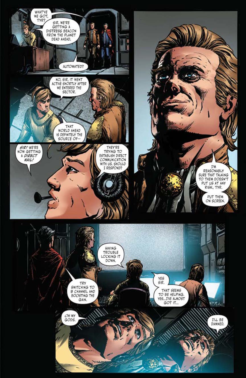 At last! The epic story you’ve been dying to see is here, a galaxy and timeline-spanning saga bringing the two very different (and yet so very much alike) crews of the Battlestar Galactica’s series together. But don’t expect this historic meeting of heroes to be friendly: they have no idea why they have been brought together, or what the result of this unprecedented meeting is. And it starts here as the legendary Commander Cain and the crew of the Pegasus are revealed to be alive, and have encountered an individual they never thought they would meet: the last Cylon. All this has happened before, but there will NEVER be anything like it again!