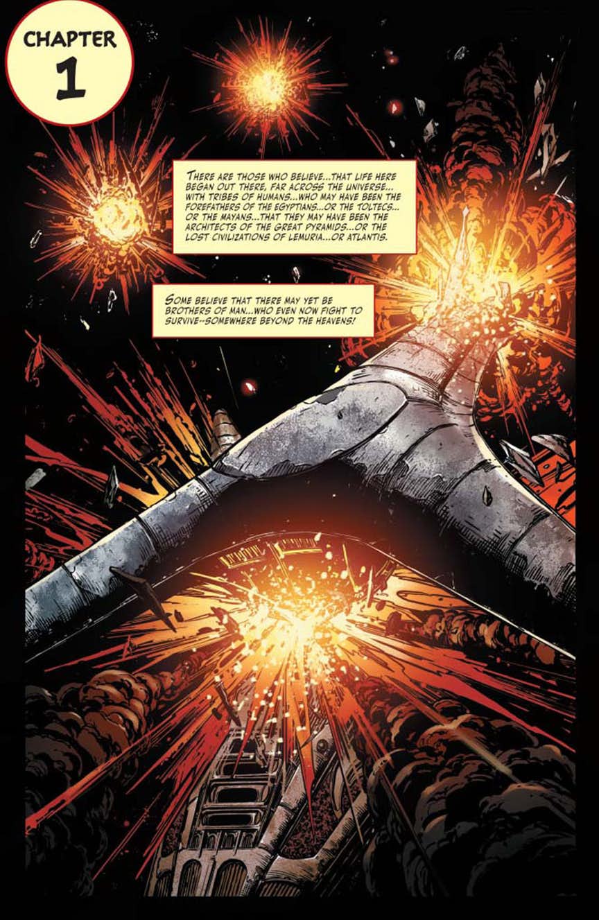 Battlestar Galactica vs Battlestar Galactica #1 hits comic book stores this coming Wednesday, and we’ve got a preview for you here courtesy of Dynamite Entertainment; check it out…