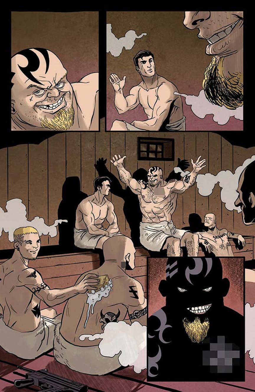 One sauna. Twenty Neo-Nazis. One Bond. James Bond.