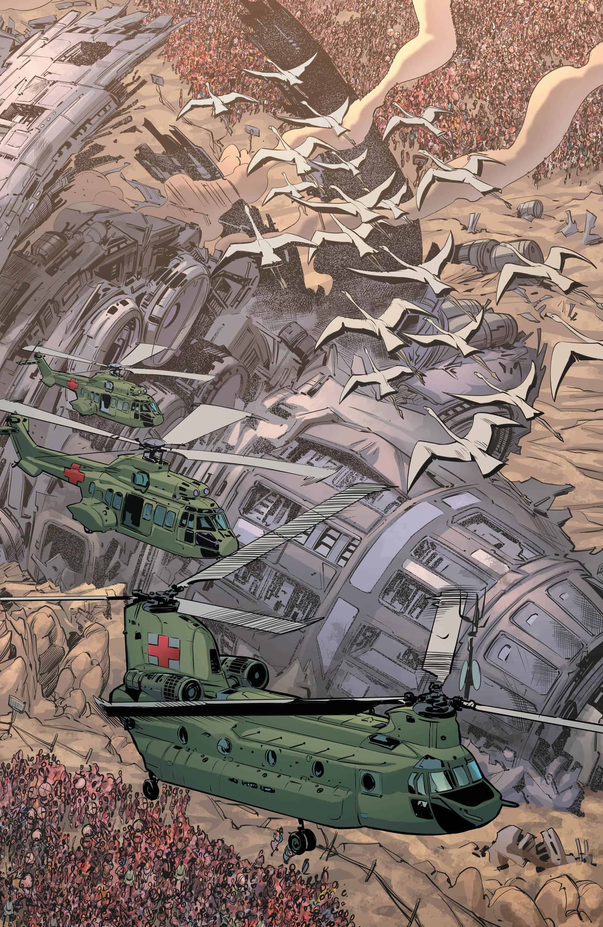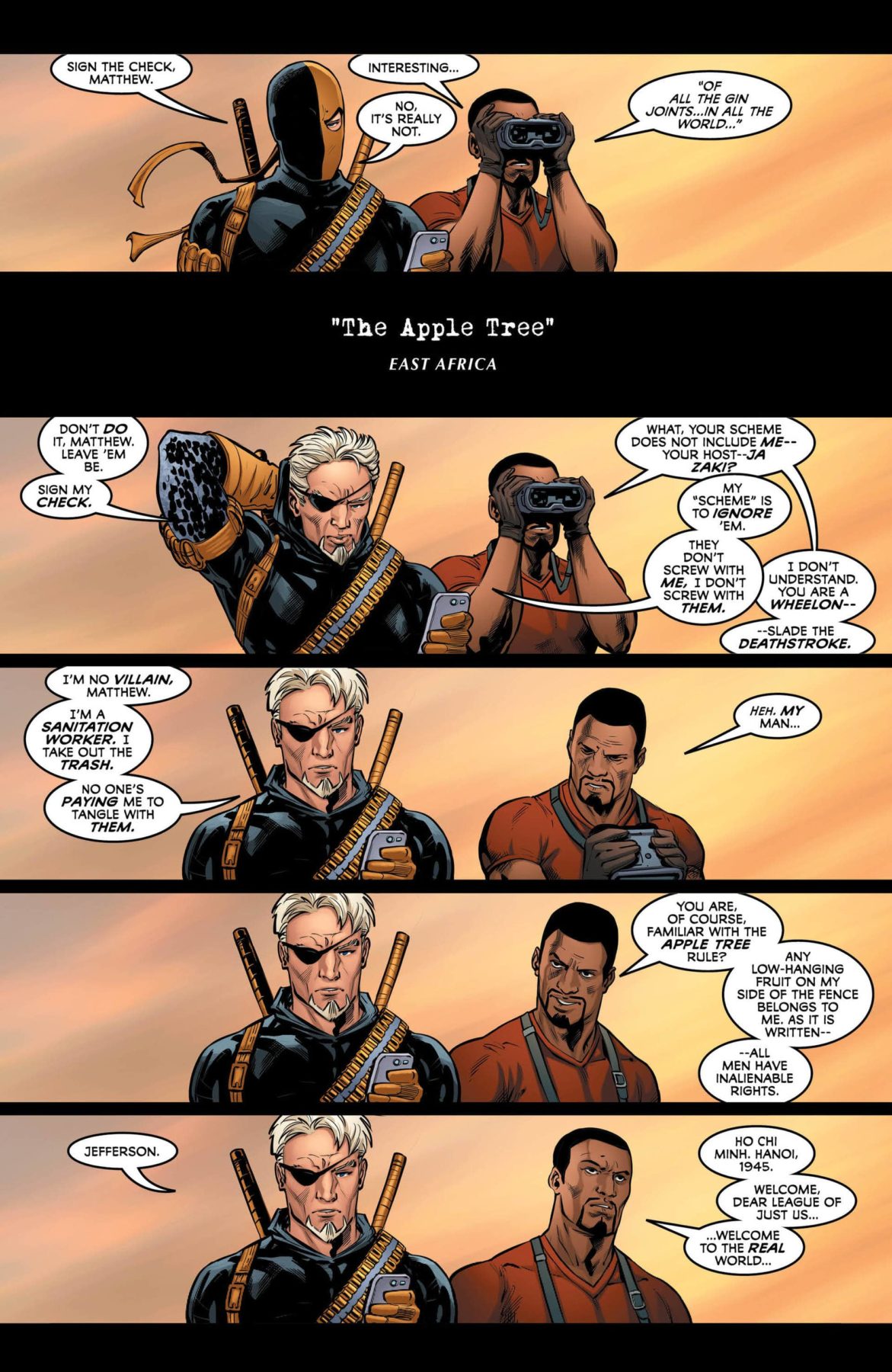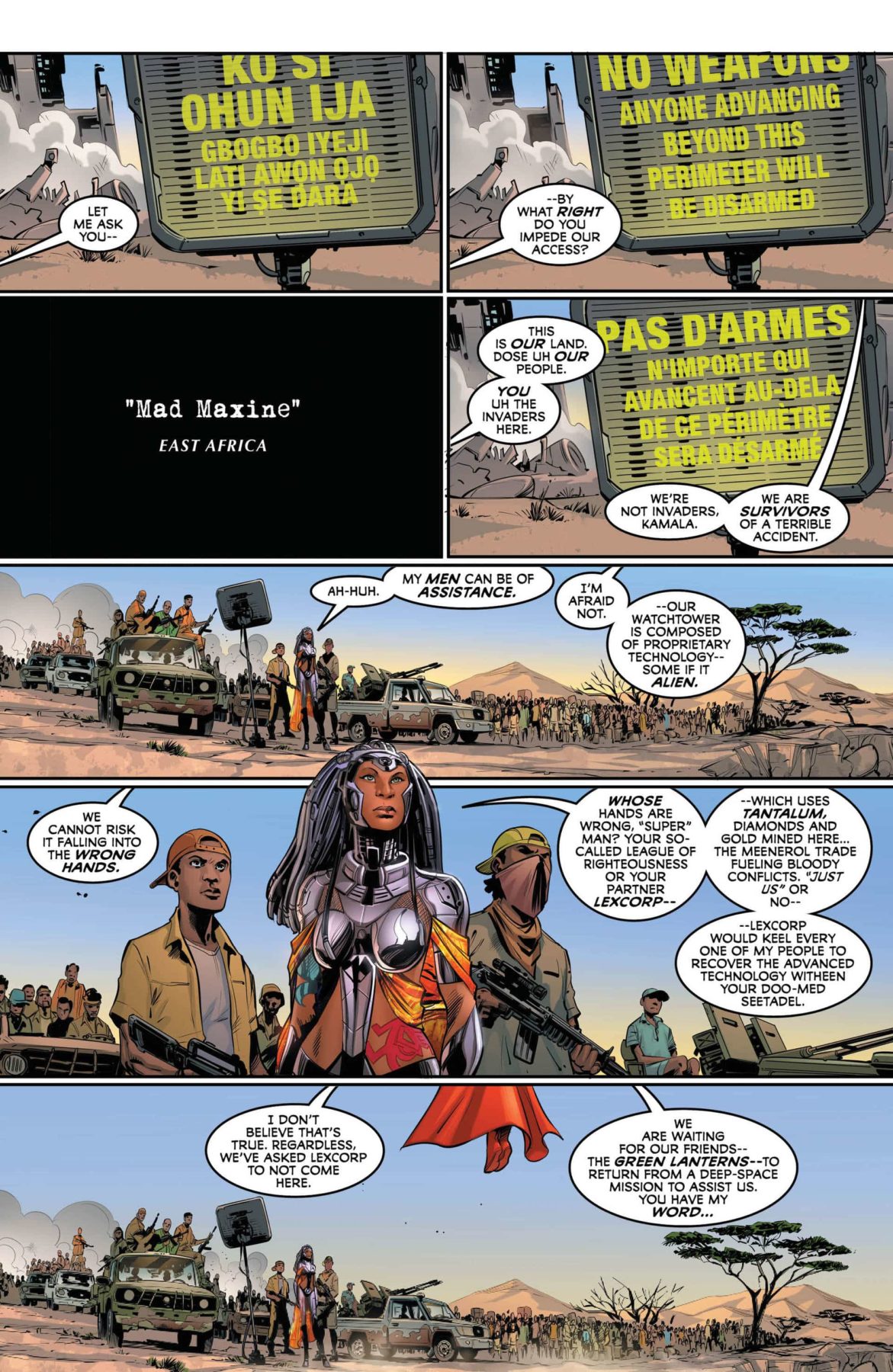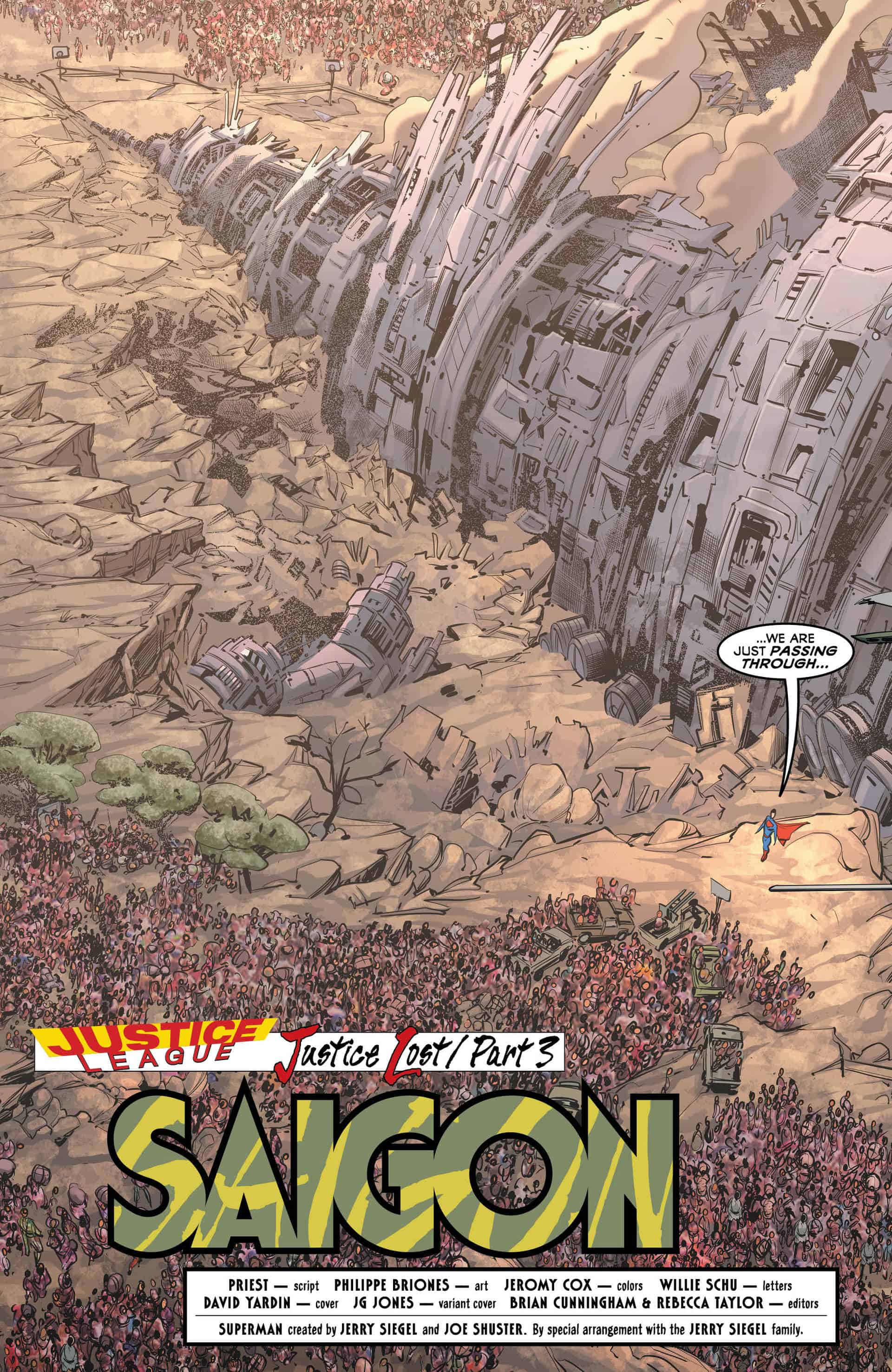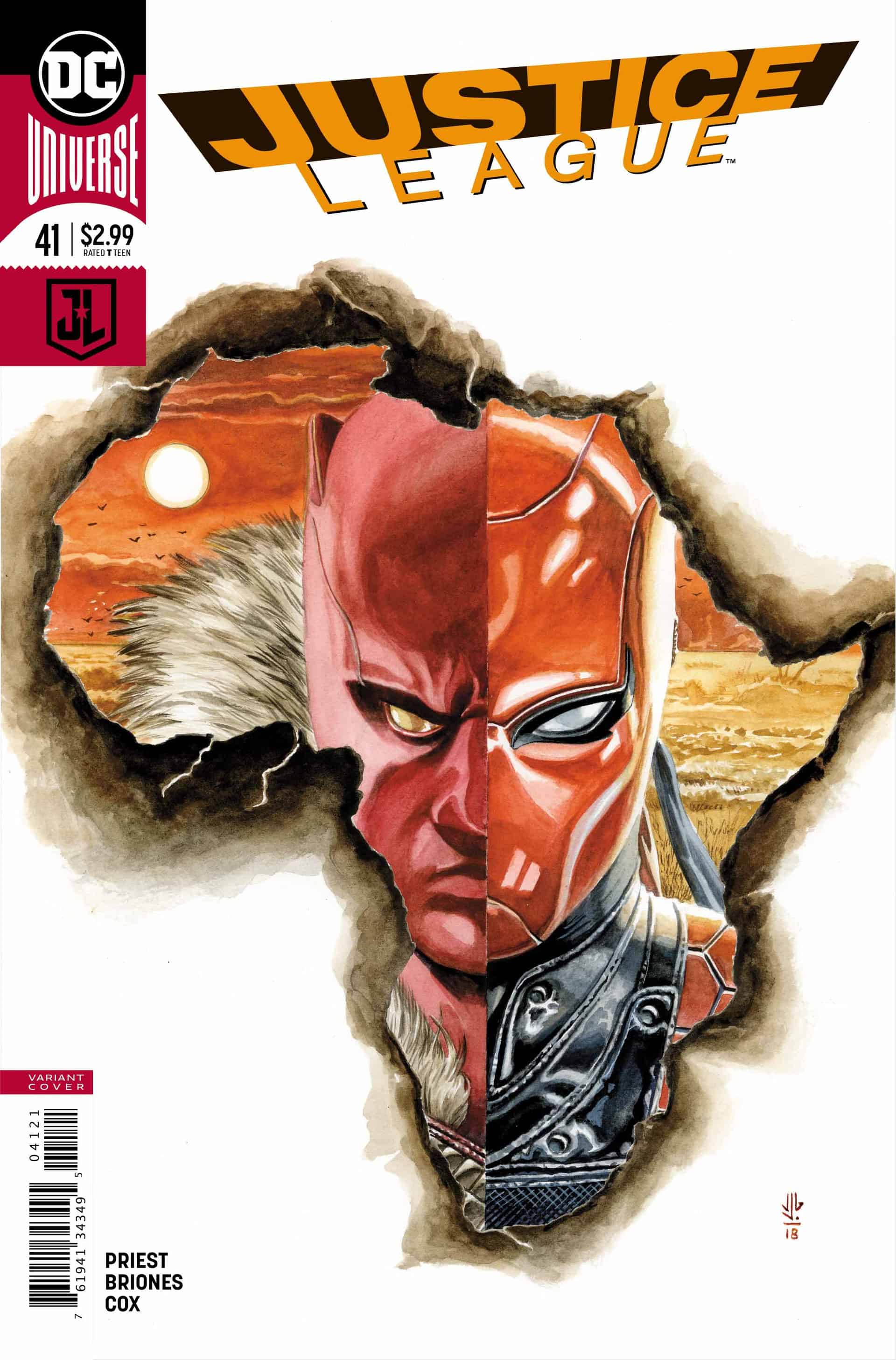 “JUSTICE LOST” part two! What does justice mean in a lawless world? This is the question the team must struggle with when the League finds itself trapped between warring factions, helpless refugees and mercenaries with advanced weaponry, all manipulated by Deathstroke’s frenemy the Red Lion. Meanwhile, Batman forces a showdown between himself and the League’s biggest fan.