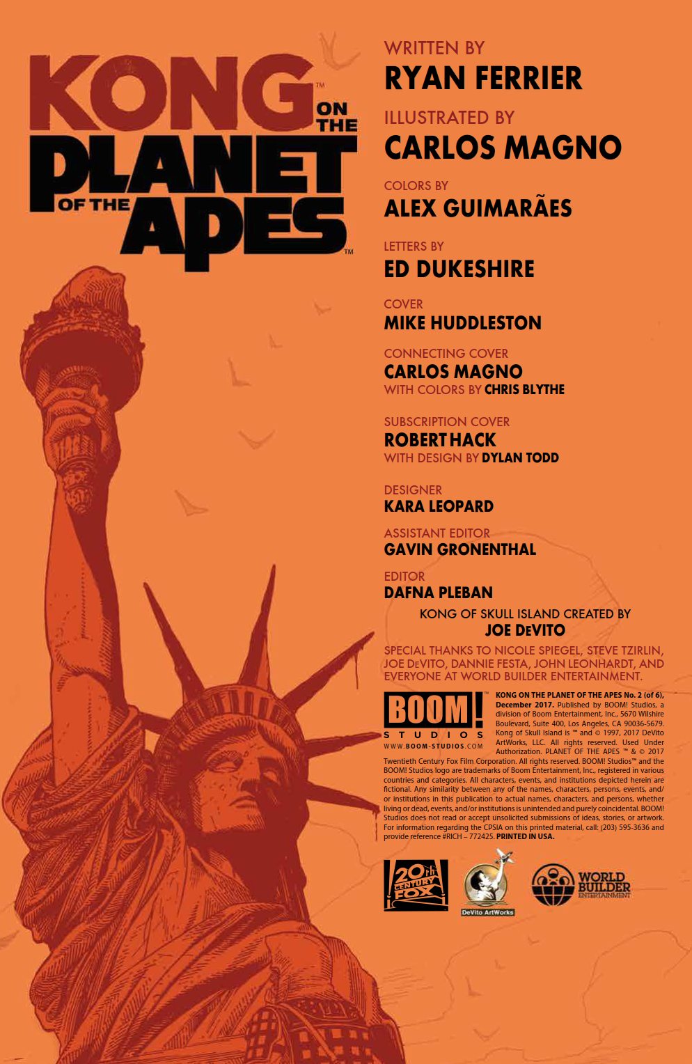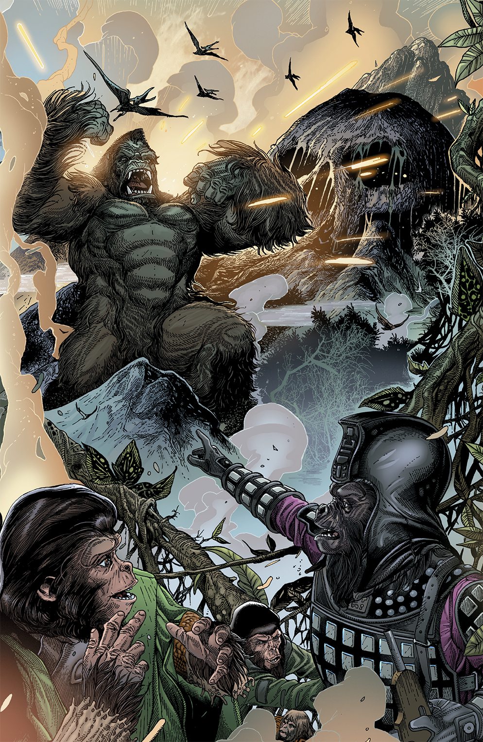 The crossover you demanded continues as Doctor Zaius, Cornelius, Zira, General Ursus, and a fleet of Gorilla Soldiers discover human natives on Skull Island…and the last surviving Kong!