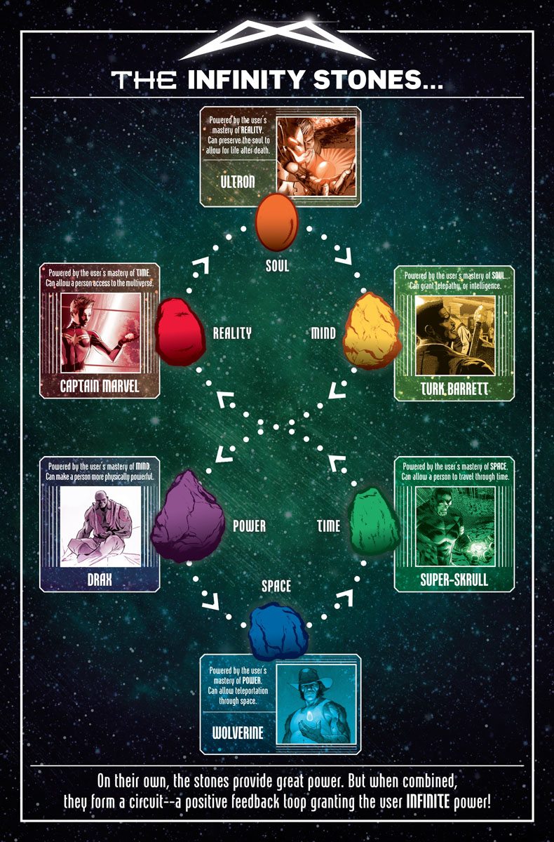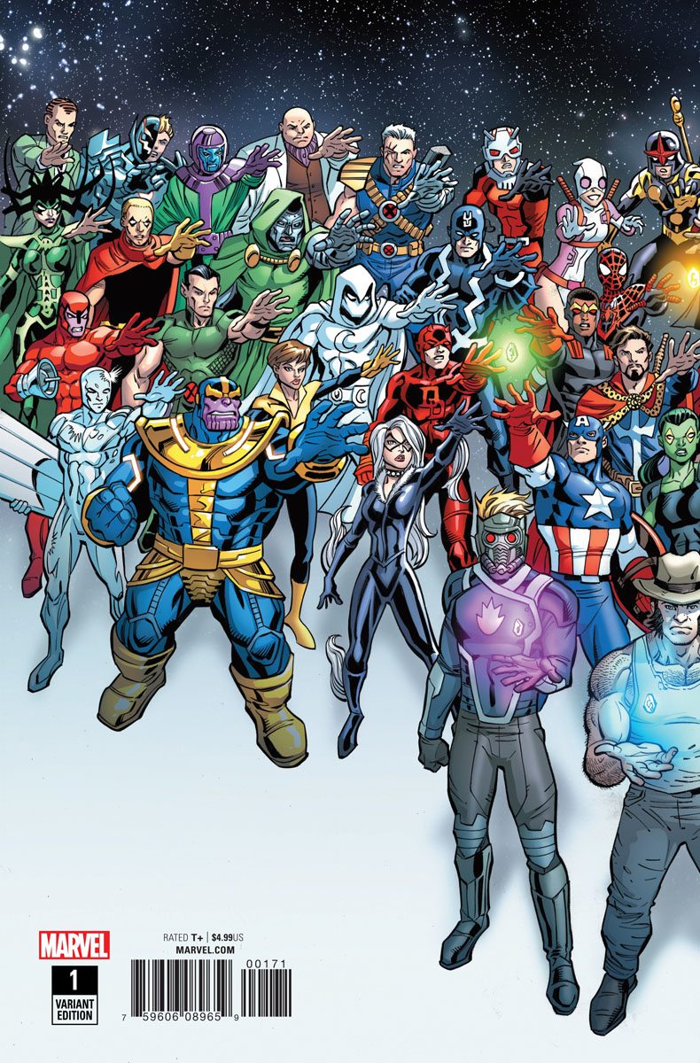 The Saga of the Infinity Stones begins! As the Infinity Stones reappear around the cosmos, the ultimate race for power is on!! Battles will be fought, blood will be spilled, lives will be lost… all as the greatest cosmic heroes and villains vie for possession of the Power Stone, towering over a remote asteroid, somehow grown to the size of a building. Watch as the path to Infinity opens before your eyes and the END lies near…