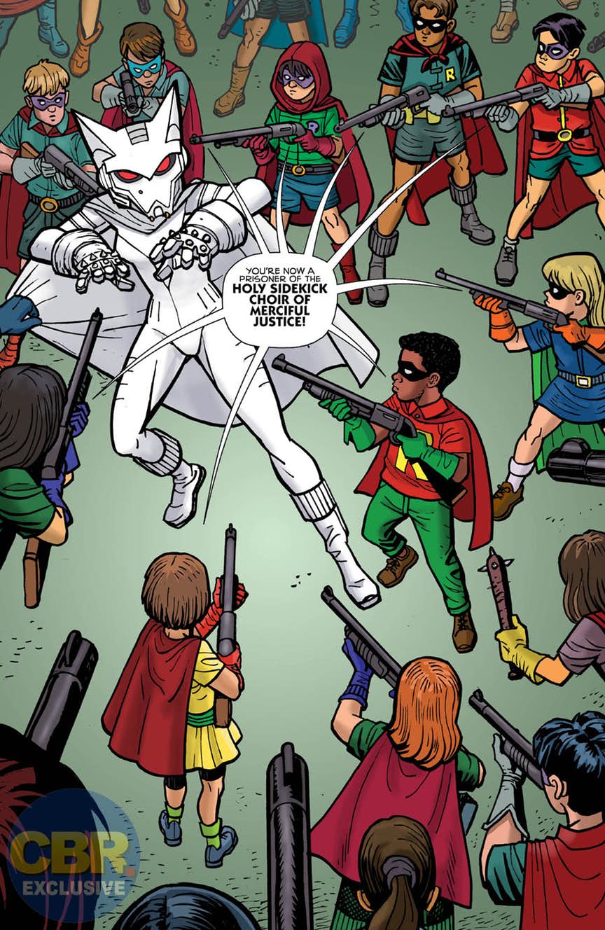 “MILK WARS” part two! Mother Panic has discovered a Gotham City transformed. What happened to her family and friends? And who moved into Gather House, the religious school that scarred Mother Panic as a young girl? It’s Father Bruce, the orphan millionaire who decided to give back to society by filling the deep demand for sidekicks. So many Robins in need of a nest! Plus, part two of the Eternity Girl backup story!