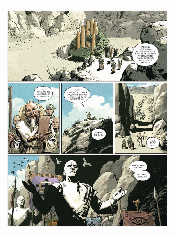 “The son becomes the father in this new chapter of El Topo’s saga as we follow Cain’s journey through the same desert wastelands and twisted mental landscapes that Jodorowsky built for us in the original film. Longtime devotees and new fans alike will love to explore this world with Jodorowsky and Ladrönn at the helm,” said Sierra Hahn, Executive Editor, BOOM! Studios.
