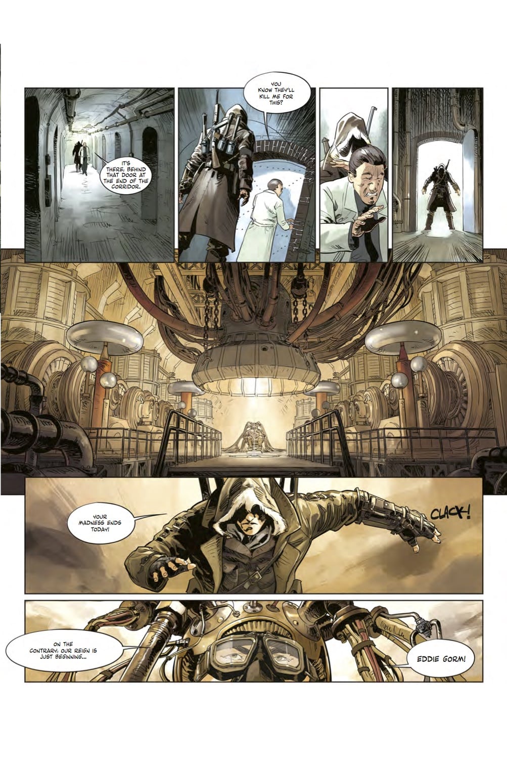 As the atomic age dawns, fresh new assassin Eddie Gorm infiltrates the Templars to foil their plans to create a devastating new weapon. 1940s London is brought to vivid life by artist Jean-Baptiste Hostache in a tale set during the blitz!