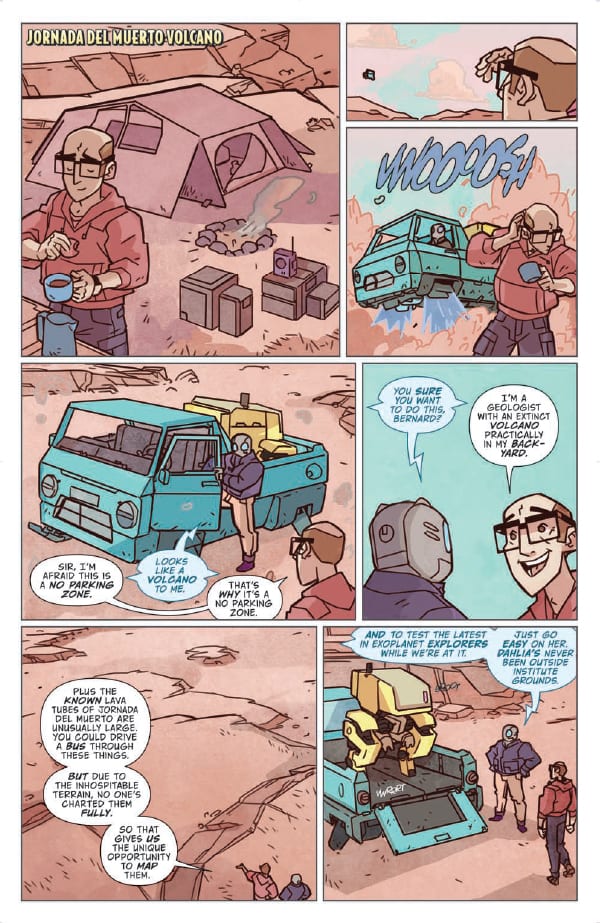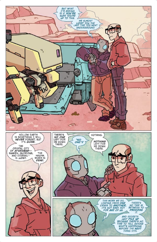 No more sci-fi catastrophes for Atomic Robo. This is now a quiet series about the charming antics and sitcom misunderstandings that happen at a boarding school for future Action Scientists. Also, Robo’s hiding a secret AI son in the basement… Bye!