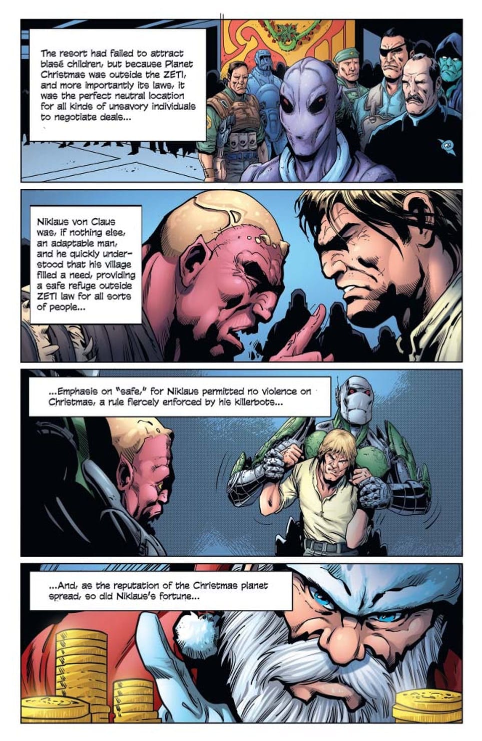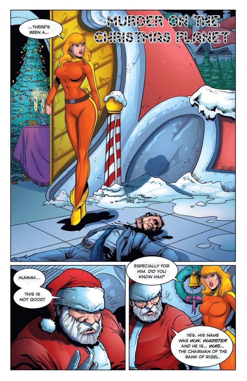 Comics legend Jean-Marc Lofficier (Mobius, Doctor Strange) steps aboard the Barbarella Cosmic Express to tell an intergalactic tale of Christmas and…murder?! Hélas, c’est vrai! Someone’s been given the ultimate gift, and jolly old St. Nick must figure out by whom. Enter the space siren for all holidays, Barbarella! Guest-starring France’s Hexagon Comics’ super-patriot hero: The Guardian of the Republic.