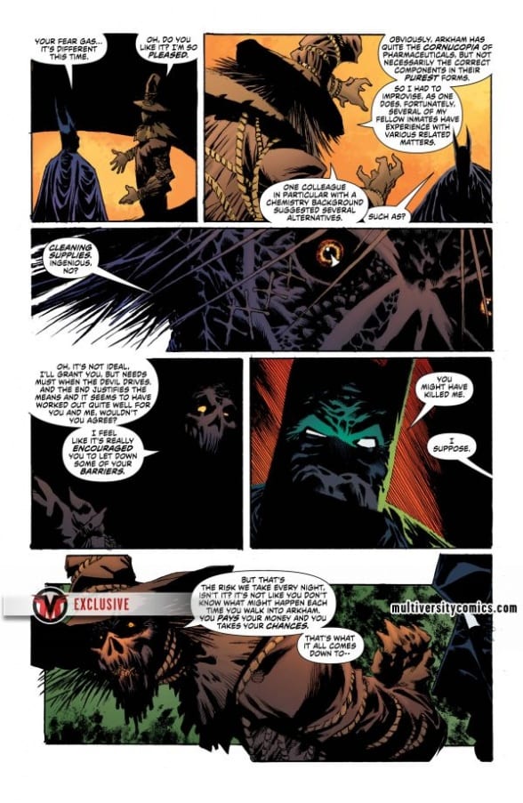 Scarecrow’s psych evaluation of Batman takes its darkest turn yet, as it completely dismantles the Dark Knight and keeps him from Gotham City! And a threat of immense magnitude will ravish the city unless Batman snaps out of Scarecrow’s control.