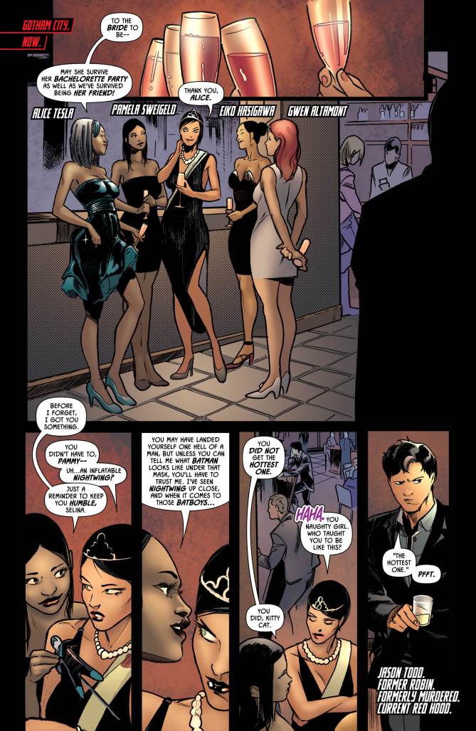 Red Hood has always been the one standing slightly apart from the rest of the Bat crew. Some see him as the Robin gone bad—which is exactly the kind of thing someone like Anarky can exploit. Now Red Hood is running security at Catwoman’s bachelorette party—and if Anarky can crash it, that could be the final straw for Jason Todd!