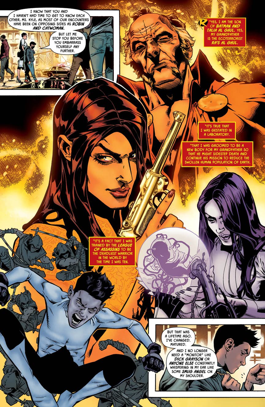 Ra’s al Ghul returns to have a heart-to-heart with his grandson, Damian. Once upon a time, Ra’s thought Bruce Wayne would be the heir apparent to his criminal empire, but now that Batman has turned his back on Talia for good, Ra’s wants to know if Damian Wayne will honor his mother by stepping into the family business at last.