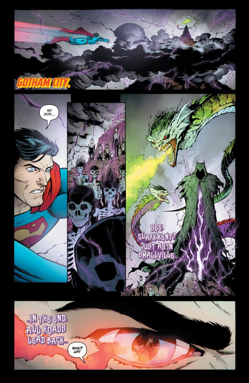 Superman is pulled into the mystery of the Dark Multiverse while the Justice League follows the trail to a weapon that could keep the forces of the Dark Multiverse at bay!
