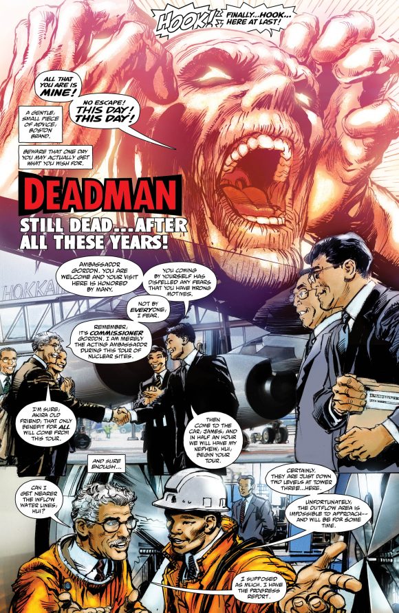 “Journey into Death” part one! When we last left Deadman, the true story had barely begun! Deadman’s death was unsolved, and his fate was intertwined with that of his parents and siblings. Even the Dark Night Detective couldn’t solve the mysteries of Boston Brand’s fantastic secrets! Now, Batman is back, confronting Deadman about who was really behind his death. Was Boston Brand’s assassination a test for the League of Assassins? Why does Batman think Ra’s al Ghul was involved? And why does Deadman need the help of Zatanna, Phantom Stranger, Dr. Fate and the Spectre to defend Nanda Parbat?