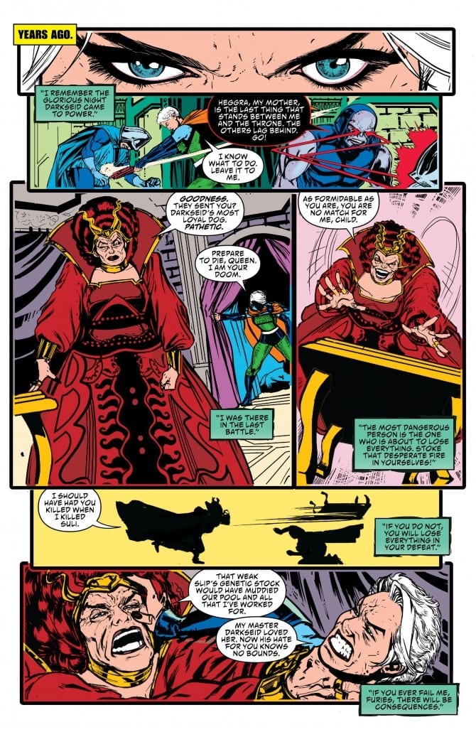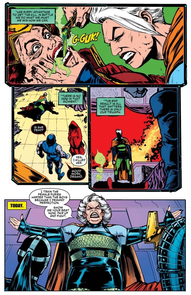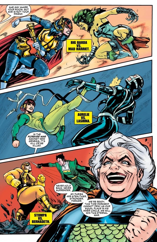 All their lives the Female Furies have been raised to be the meanest, most cunning and most ruthless fighting force on all of Apokolips. So why are Granny Goodness’ girls left behind every time the men go to war? With the might of New Genesis hanging over the planet, and the Forever People making mincemeat out of Darkseid’s army, Granny thinks it’s about time that changed.
