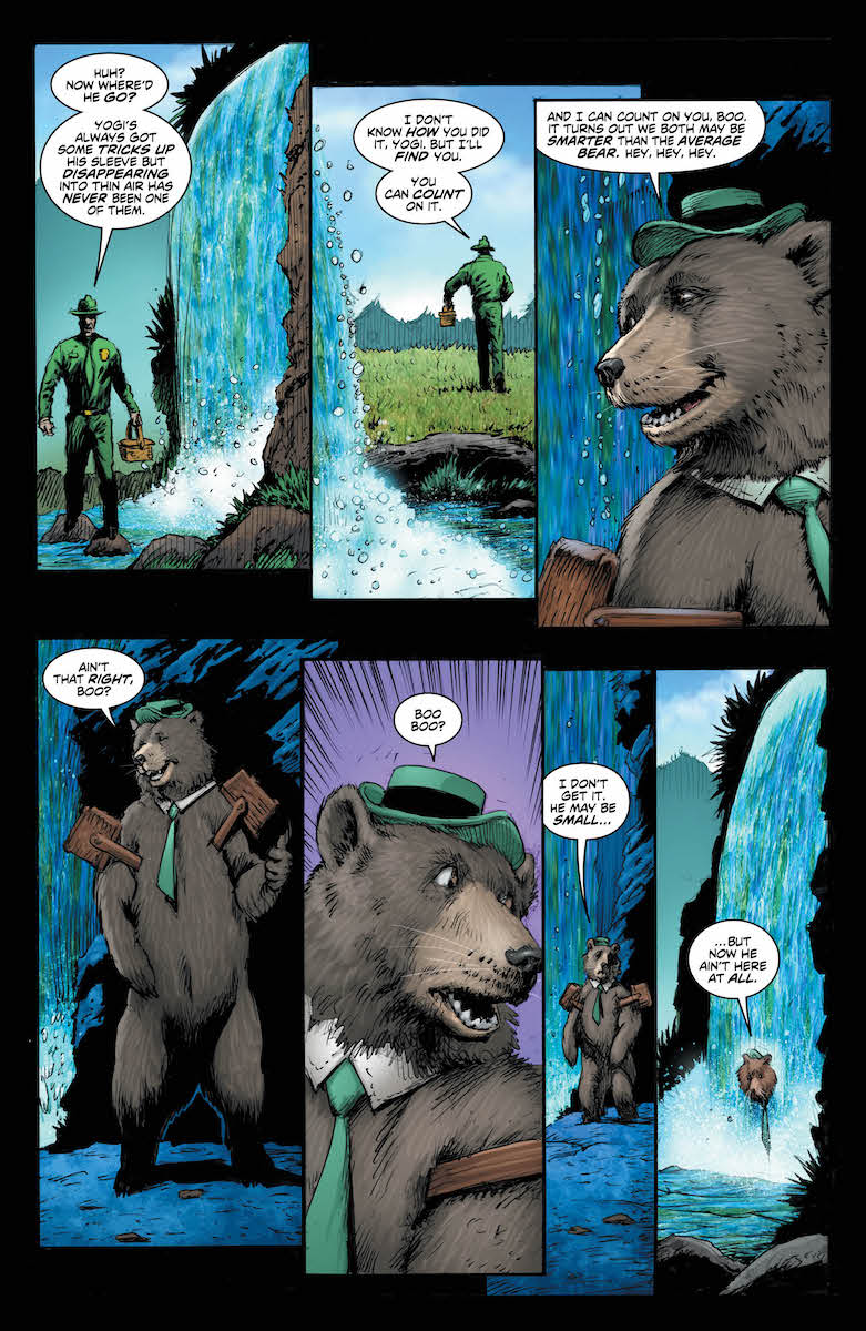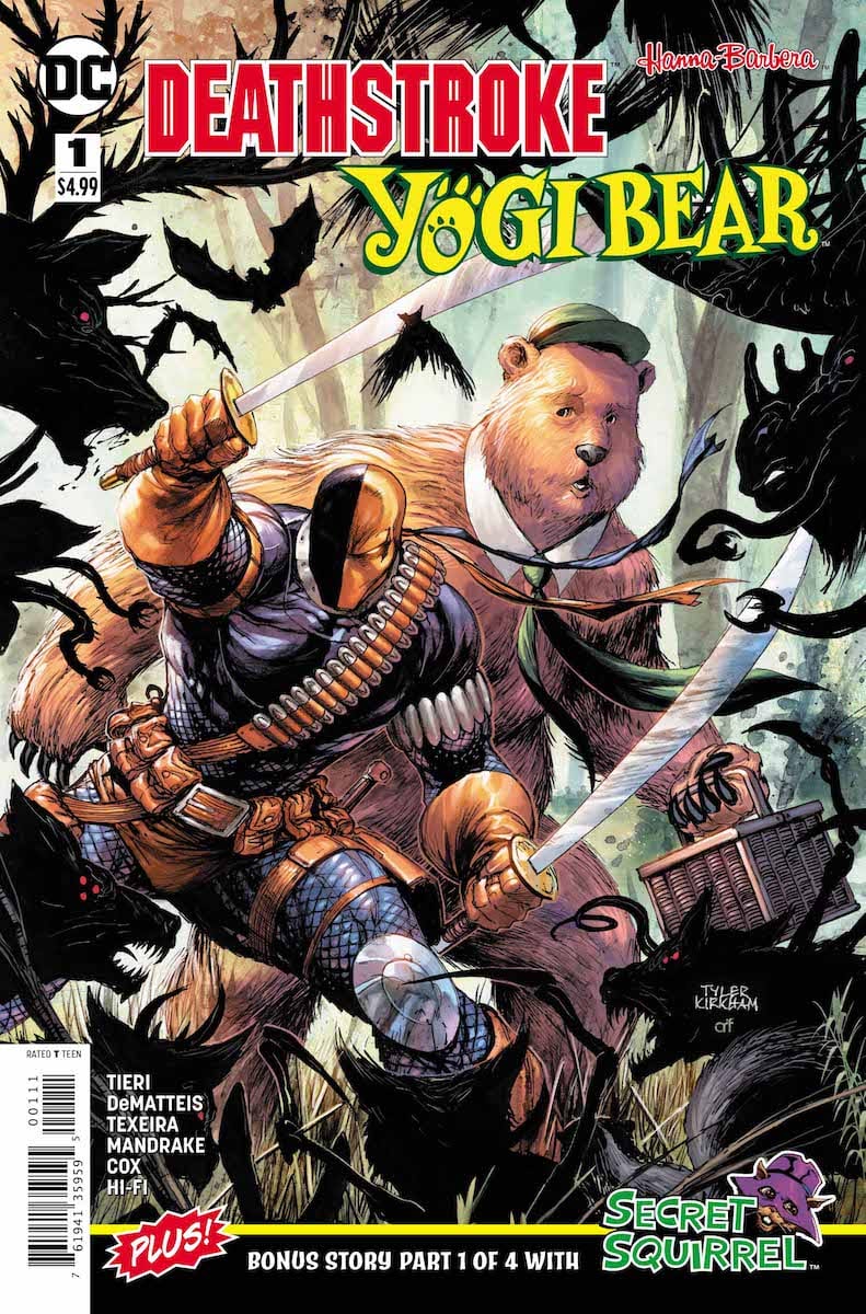 In Yellowstone Park, legends speak of a spirit bear referred to as “the Yogi,” which few if any have actually encountered. Real or not, when a bear seems to have graduated from stealing picnic baskets to kidnapping actual campers, Ranger Smith decides it’s time to stop this menace—so he calls on the services of Slade Wilson—a.k.a. Deathstroke—to get the job done. Plus, part one of a Secret Squirrel backup story written by J.M. DeMatteis.