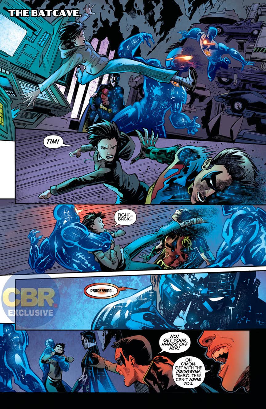 “Batmen Eternal” part four! Ulysses Armstrong knows everything there is to know about Tim Drake’s future—including every inevitable step he’ll take on the road to becoming a dark version of himself! Unfortunately, Ulysses is perfectly happy to take everything from him…and use it to give birth to an unstoppable menace!