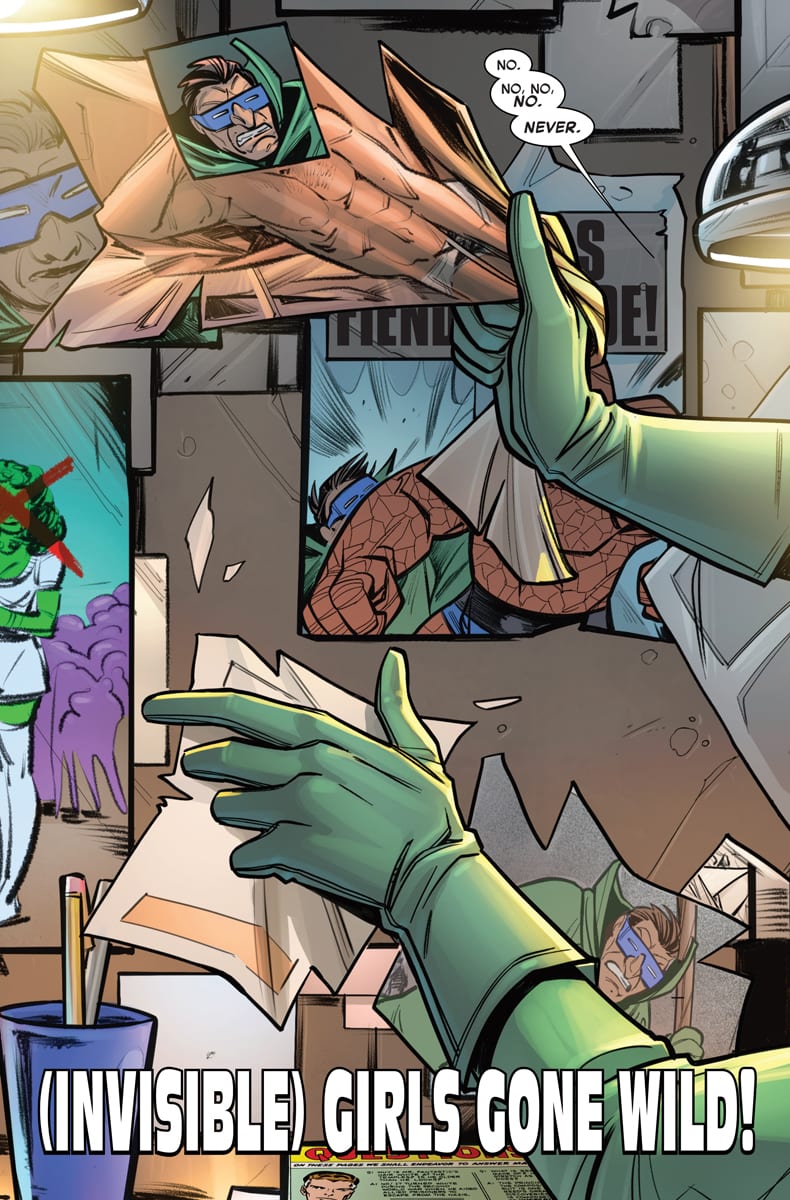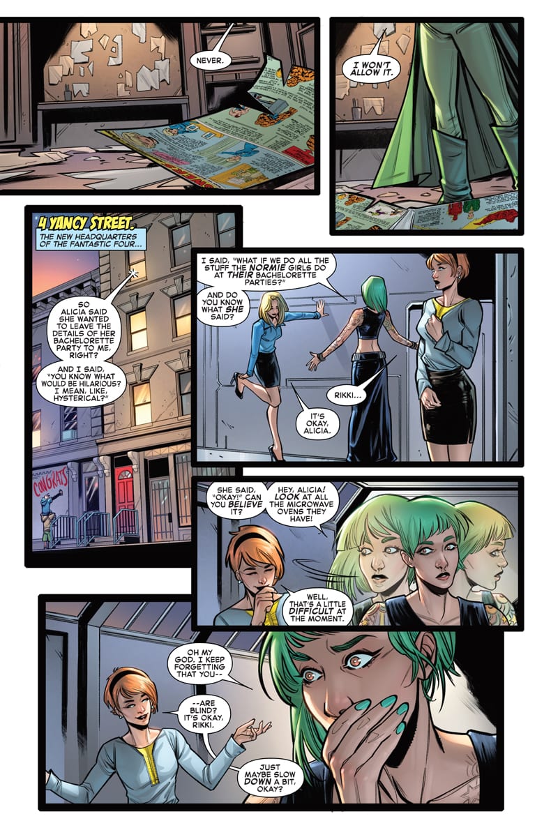 Come and celebrate the impending nuptials of the Thing and Alicia Masters with a Ladies Night Out as only the First Family of Comics can do it! Guest-starring She-Hulk, Medusa, Crystal and more, it’s the bachelorette party Alicia never expected—and one whose ribaldry will be interrupted by the arrival of a Surprise Super Villain! (And no, we don’t mean Johnny Storm!) Meanwhile, the Thing has an unexpected meeting with his future father-in-law, the Puppet Master! Plus, Hembeck! The Fantastic Four family tree! And more! R.S.V.P. at your local comics retailer this December, and don’t forget to kiss the bride!