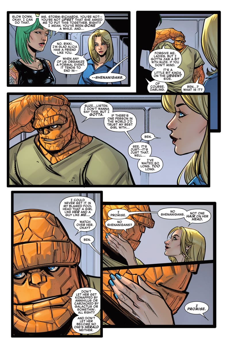 The past couple of comic book weddings haven’t went exactly as planned, and so Ben Grimm and Alicia Masters will be hoping they can get hitched without a hitch this coming week in Fantastic Four: Wedding Special #1, and you can take a look at a preview of the issue here…