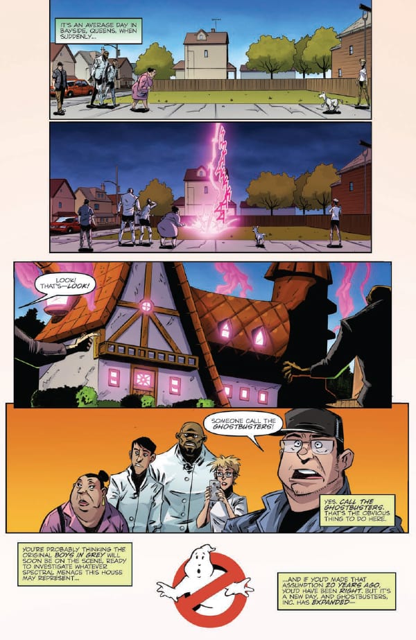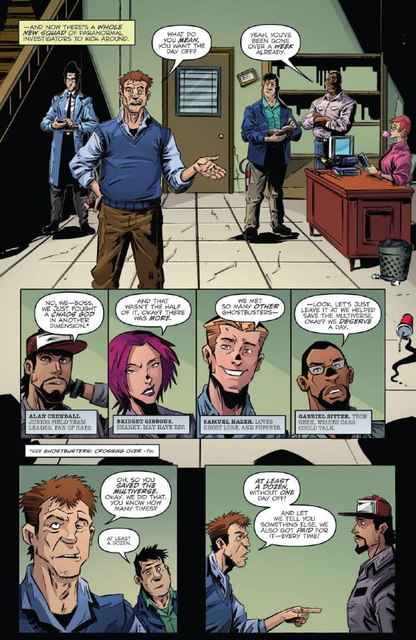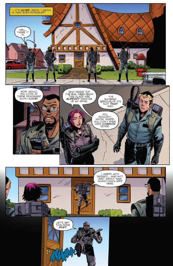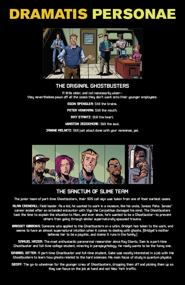 Twenty years in the future, and a new generation of Ghostbusters… is sent on all the jobs Ray, Winston, Peter, and Egon just don’t feel like taking on themselves. The Sanctum of Slime Ghostbusters—Bridget, Samuel, Gabriel, and Alan—have proven themselves many times over… first against the demon Dumazu, and later with the Ghostbusters of many other dimensions in the recent Crossing Over event. Now they’re ready for an easy gig, something like a simple haunted house. But they better be careful… you never know Wat could happen.