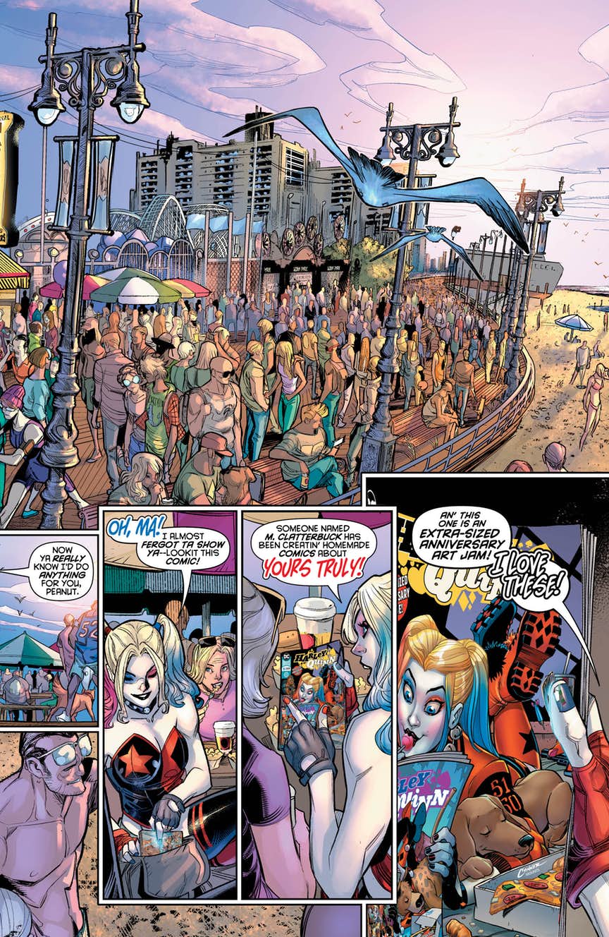 Harley Quinn #50 hits comic book stores today and we have a preview of the extra-sized anniversary issue for you here courtesy of DC Comics; check it out…