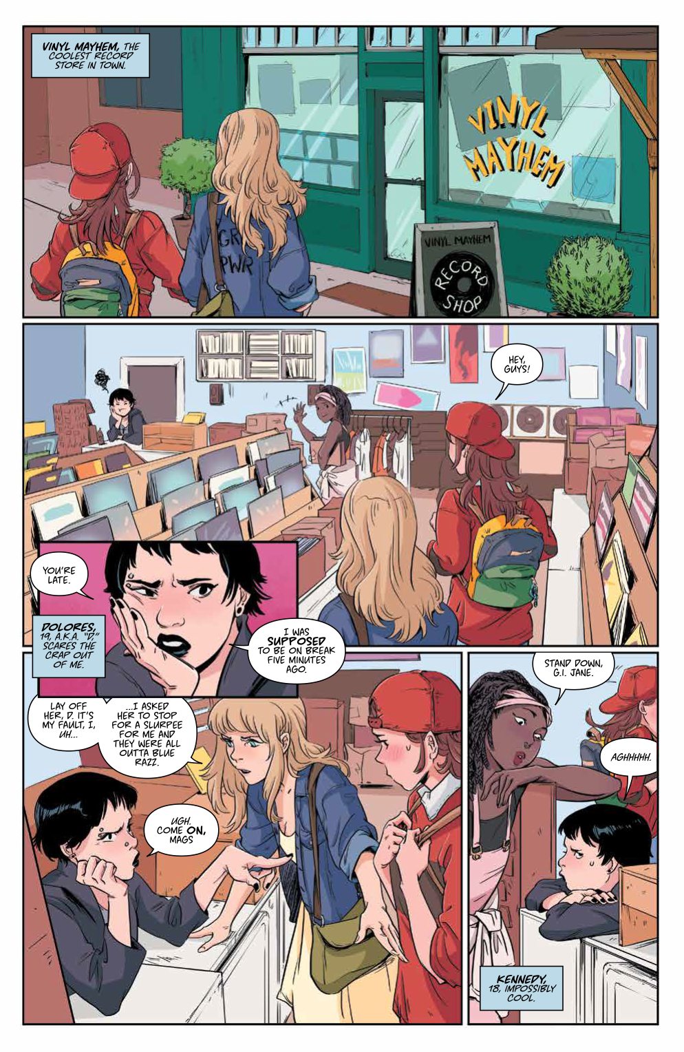 But when the staff’s favorite singer mysteriously vanishes the night before her band’s show in town, Chris finds out her co-workers are doing more than just sorting vinyl…her local indie record store is also a front for a teen girl vigilante fight club!