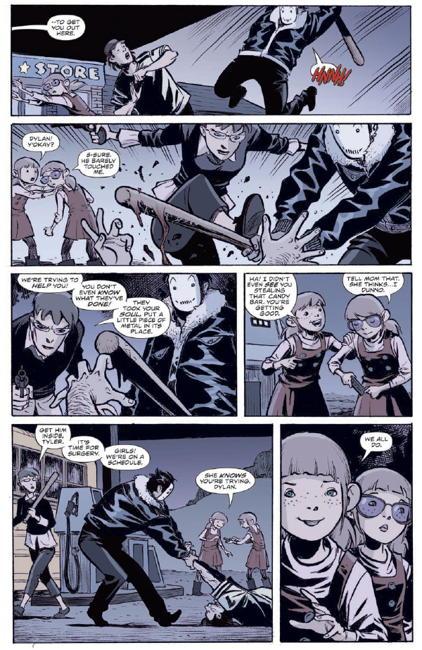 Ten-year-old fraternal twin Dylan Sandifer and her family have fallen down a rabbit hole full of secret implants, conspiracy theories, Mandela effects, extradimensional invaders, and organ thieves. As the attacks against them intensify, the Sandifers light out on a cross-country search for answers and salvation, blazing a bloody path of torture, arson and murder. Can young Dylan save her family from these delusions… or is this ornate conspiracy actually true?