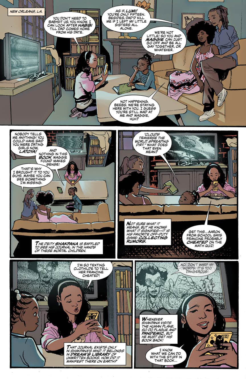 From her bayou, Erzulie scries upon the mortal realm and sees four human girls open a mysterious and magical journal filled with whispers and rumors that, if they spread, could cause a pandemic unlike any the Earth has seen, with the power to release Sopona, the loa lord of infectious disease and cousin to Erzulie, who is currently banned from the human plane.