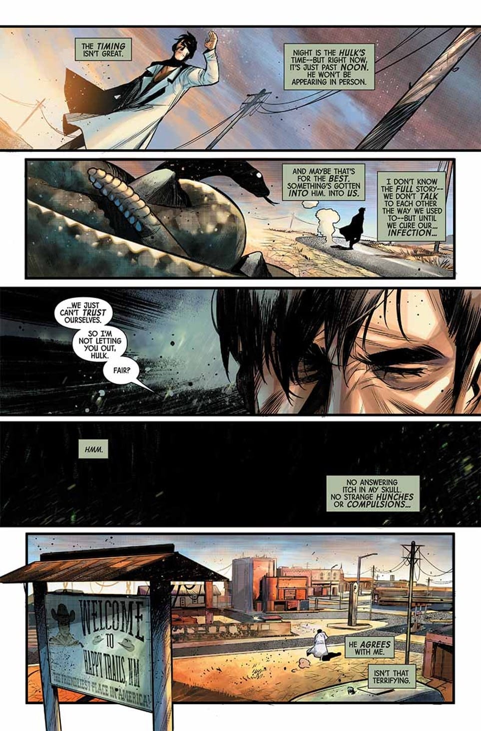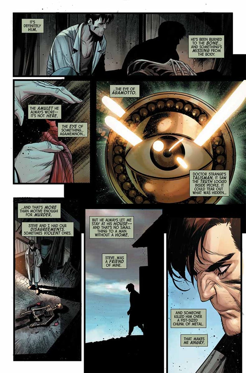 “THE BEST DEFENSE” STARTS HERE! Stephen Strange is dead. A charred skeleton in an abandoned barn on the edge of a deserted town. Bruce Banner wants to know why. And he won’t stop until he has the truth in his hands…with or without THE IMMORTAL HULK.