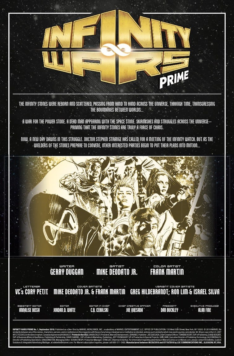 Infinity Wars Prime #1 is out on July 25th, priced $4.99.