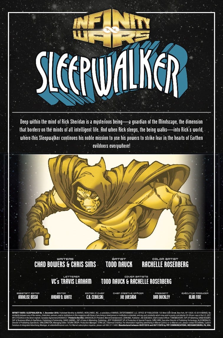 Infinity Wars: Sleepwalker #1 is out on October 3rd, priced $3.99.