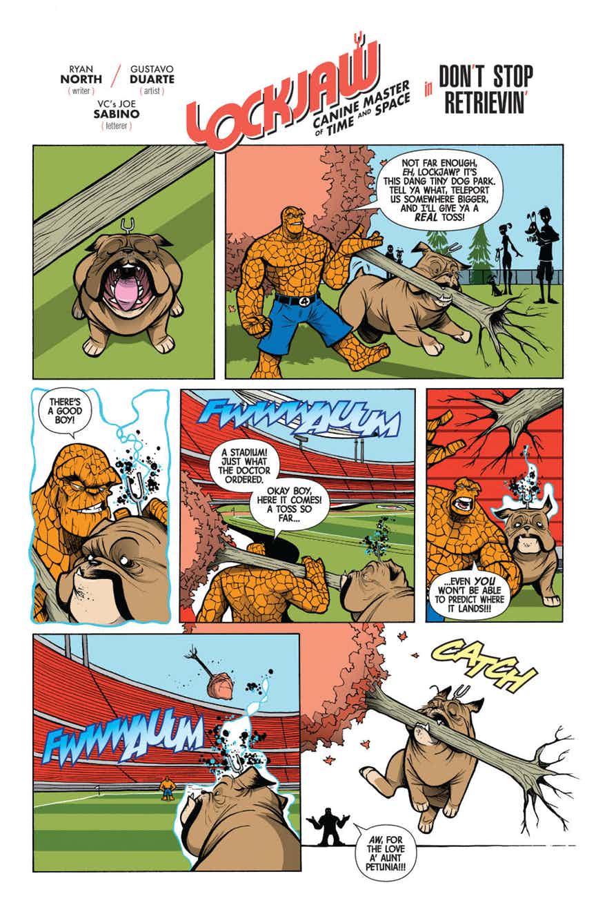 SOMEDAY, ALL OF THIS WILL BE YOURS! A king in training. A brother destined for madness. These are the early days of the Boltagon legacy. When the king of the Inhumans is attacked, Black Bolt and Maximus spring into action to save their leader! But when Black Bolt loses control, what are the consequences for his future kingdom – or his own family? Plus: A two-page backup (in every issue!) starring Lockjaw, as told by UNBEATABLE SQUIRREL GIRL writer Ryan North and artist supreme Gustavo Duarte!