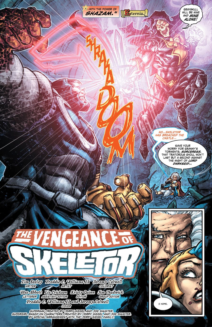Betrayed by Skeletor and fearing the power Darkseid gained in his attack on Castle Grayskull, Superman takes up arms with his old compatriots. But will their combined might be enough to win a battle against a foe armed with the Anti-Life Equation?