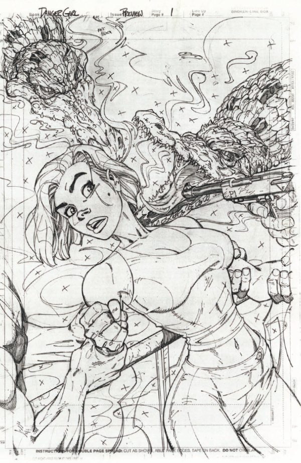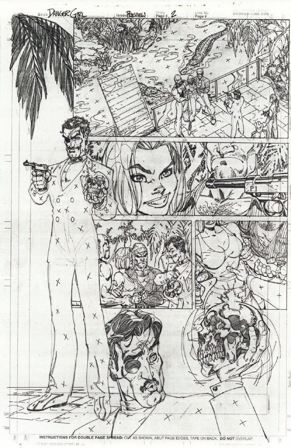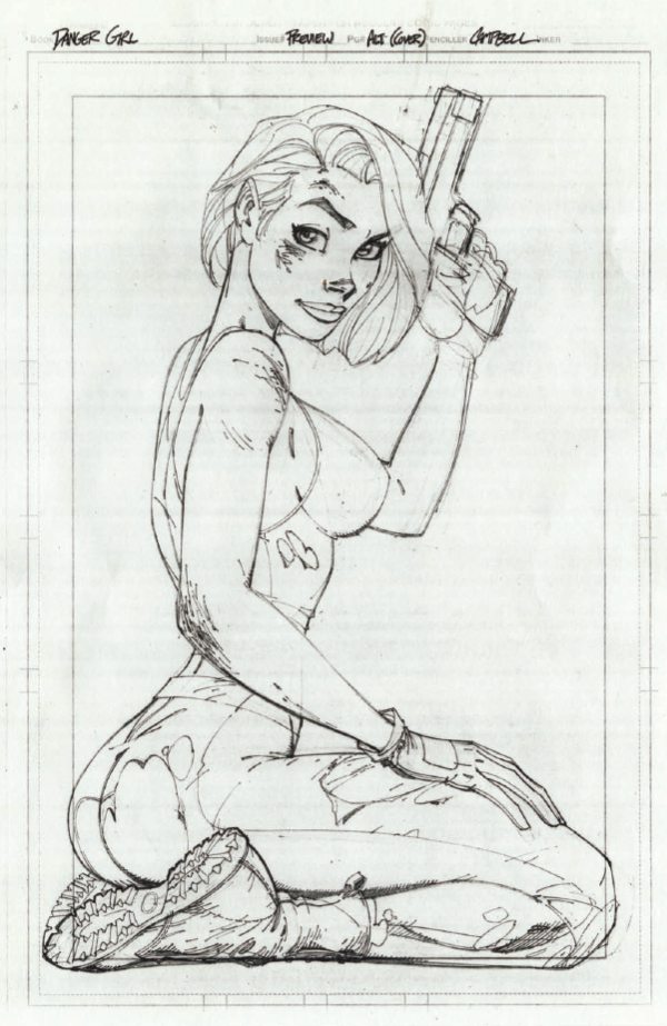 It’s been 20 years since Danger Girl #1 exploded onto the comics scene, and IDW is celebrating in a unique way this Wednesday by presenting J. Scott Campbell’s pencils from the preview story and first issue—all scanned from the artist’s personal archives—for the FIRST TIME. The prestige collection also contains the preview and issue #1 stories inked and colored, offering fans a chance to peruse both versions! Check out a look at Campbell’s new cover and some interior artwork here…