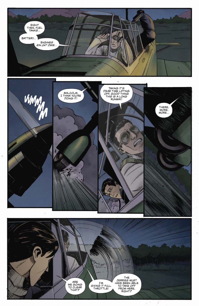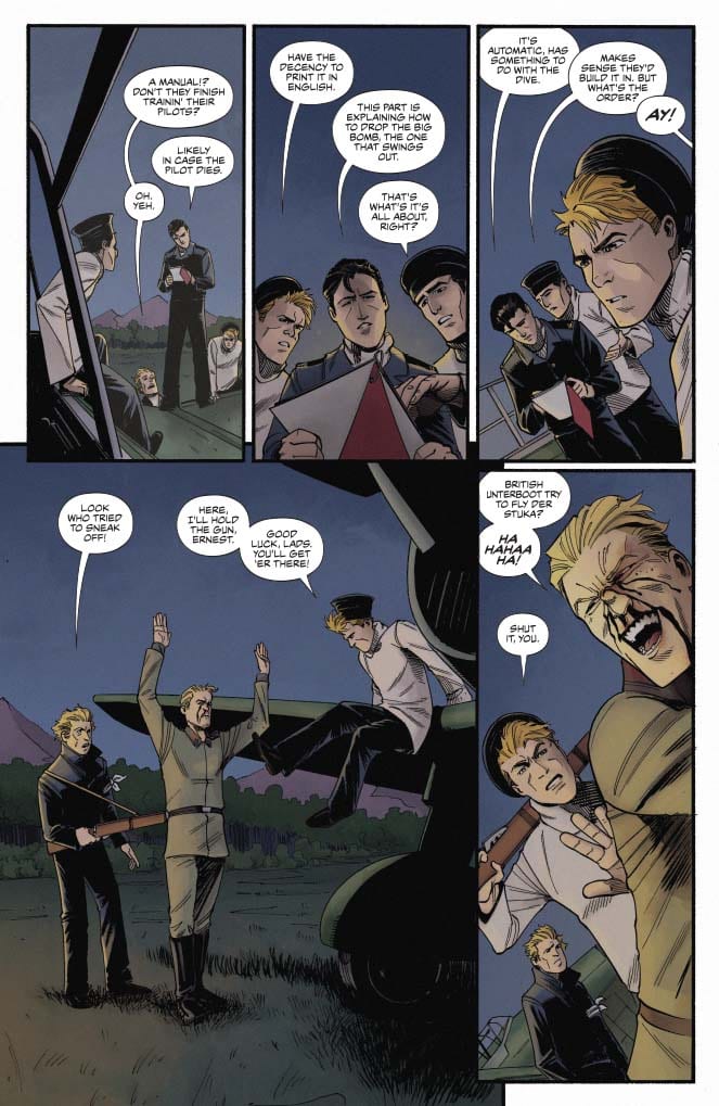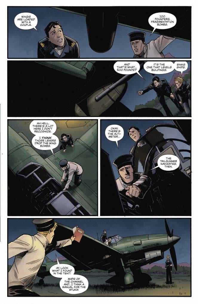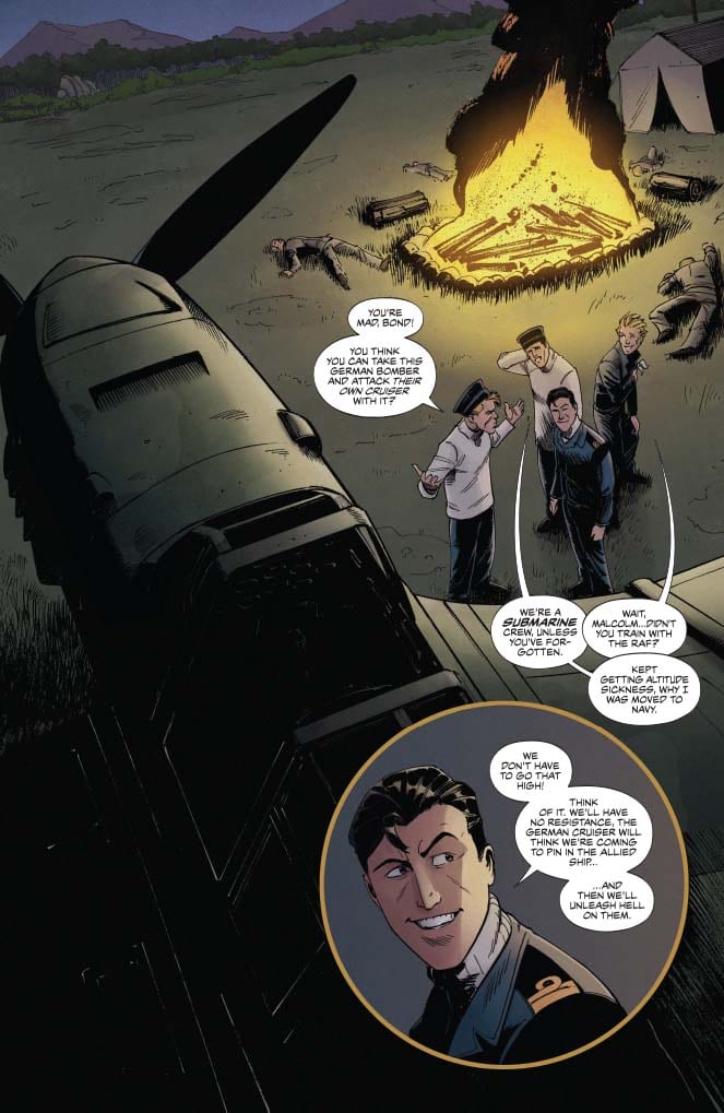 Bond and his squad commandeer a German bomber plane, to sink a Nazi cruiser. And aside from not knowing how to fly the bomber, or how to drop bombs from it, all should go as planned…