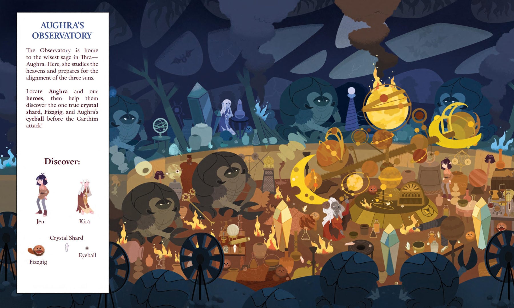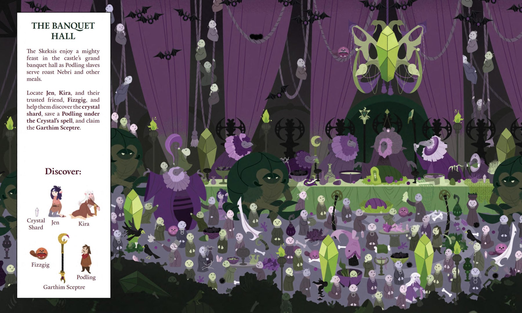 Each page contains dense artwork with hidden treasures waiting to be found as readers rediscover the magic of the cult-classic film, with lush spreads that present Jim Henson and Brian Froud’s fantastical vision of Thra and the wonderful creatures that live there