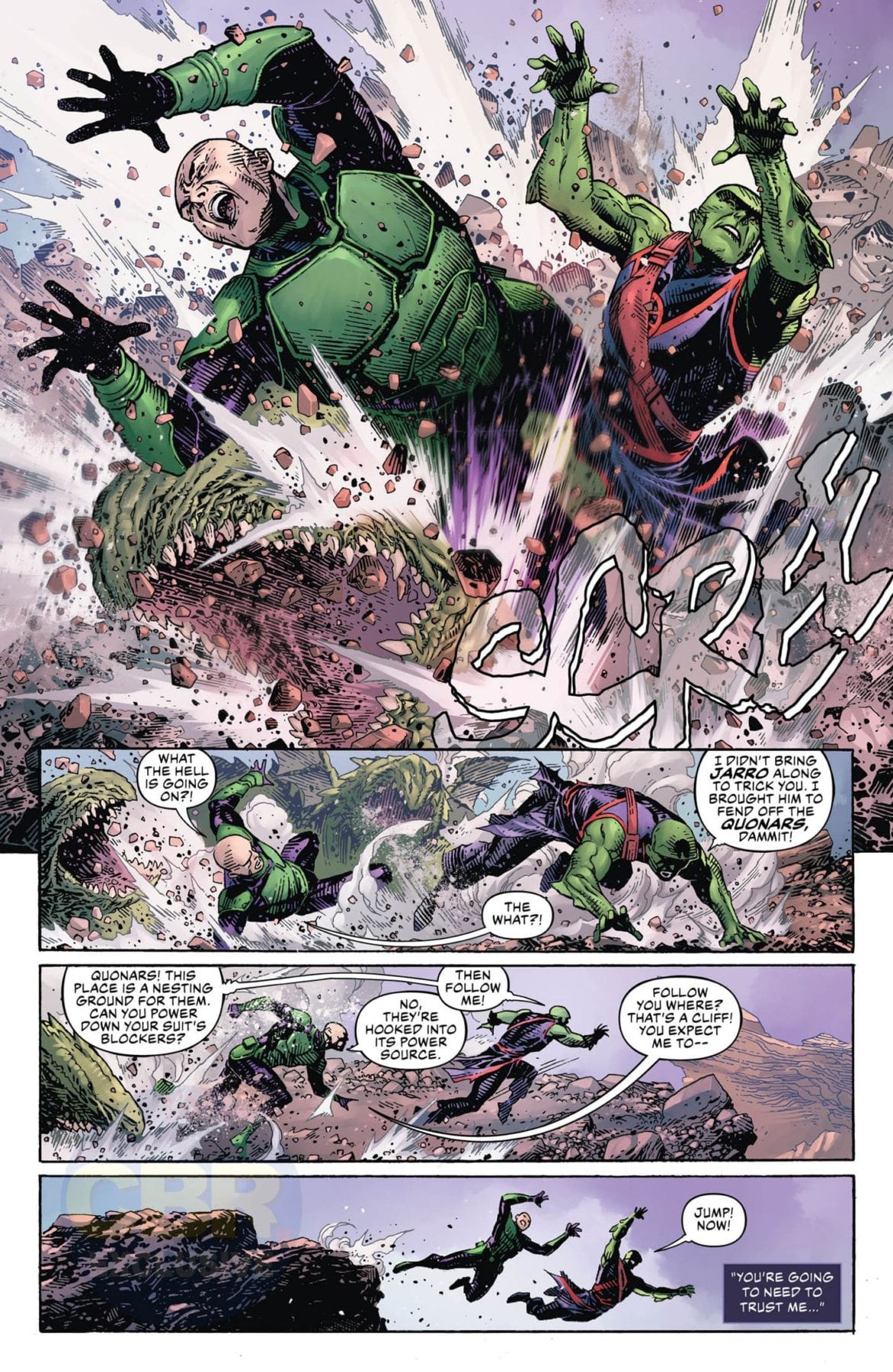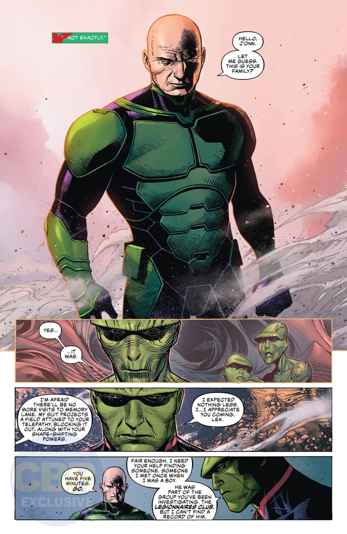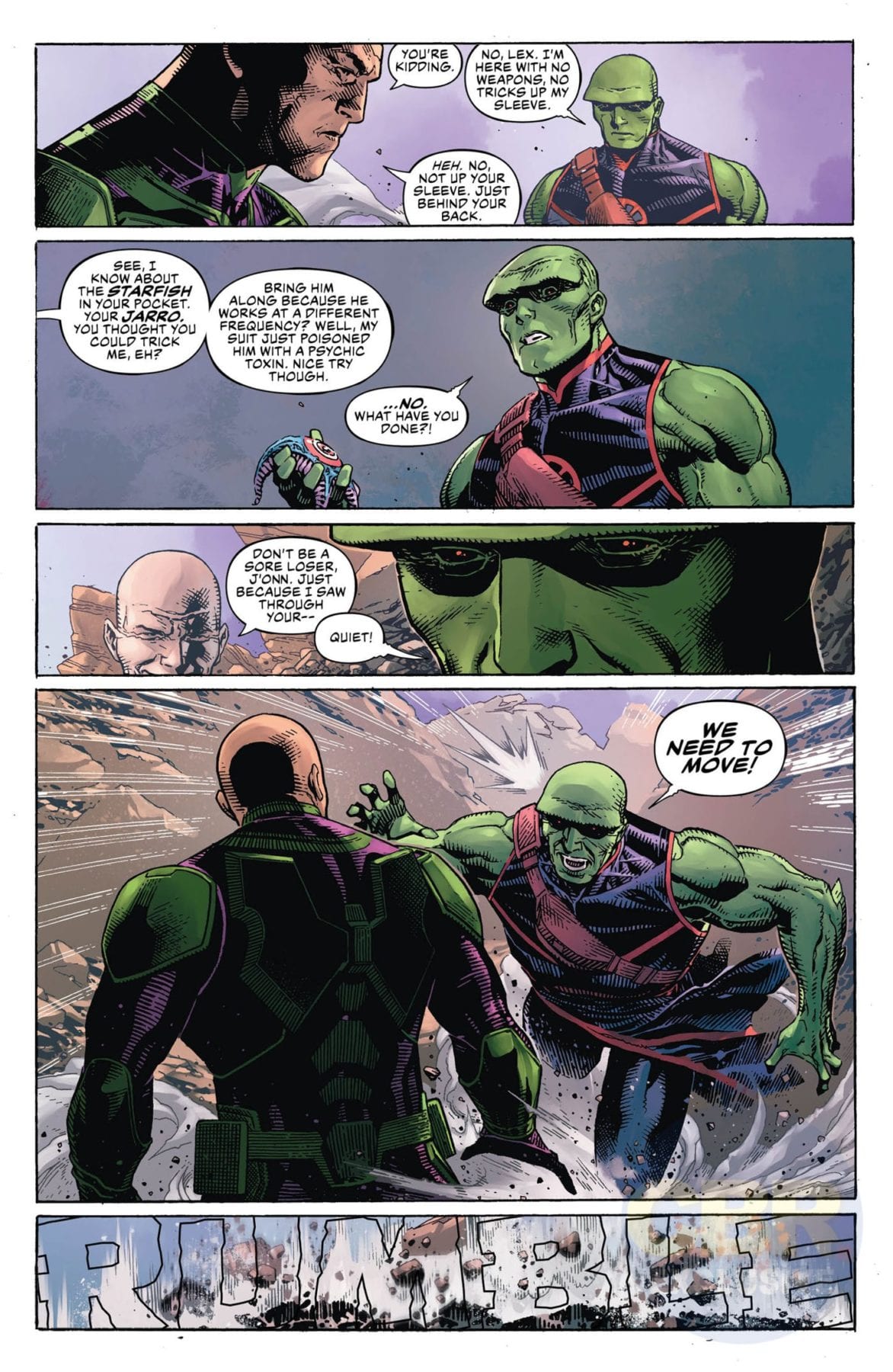 After the disastrous events of the Justice League Annual, Martian Manhunter decides to take matters into his own hands and negotiate a peace with Legion of Doom leader Lex Luthor. Traveling to a distant moon, the two enemies face their intertwined pasts in a showdown for the fate of the Multiverse. However, before either of them can lay claim to the power of the Source Wall once and for all, an unexpected threat forces them to unite…or risk death at the ends of the cosmos.