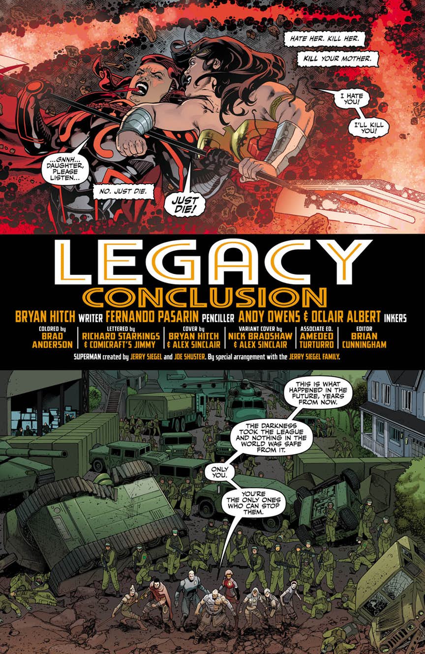 “LEGACY” finale! The truth about Sovereign is revealed—and her identity will shake the Justice League to its core! The Darkness is out of control and if the Justice League and their future children don’t triumph over its evil, it will mean the end of everything, everywhere, forever.