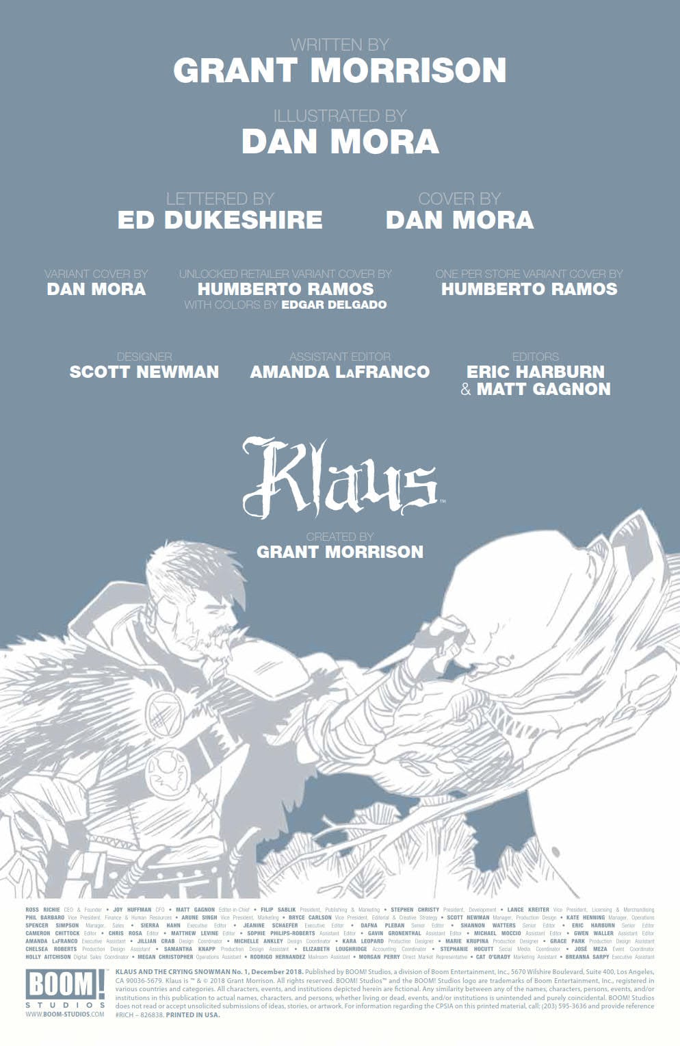 Grant Morrison and Dan Mora’s Klaus returns this Wednesday as Boom! Studios releases Klaus and The Crying Snowman; check out a preview of the issue here…