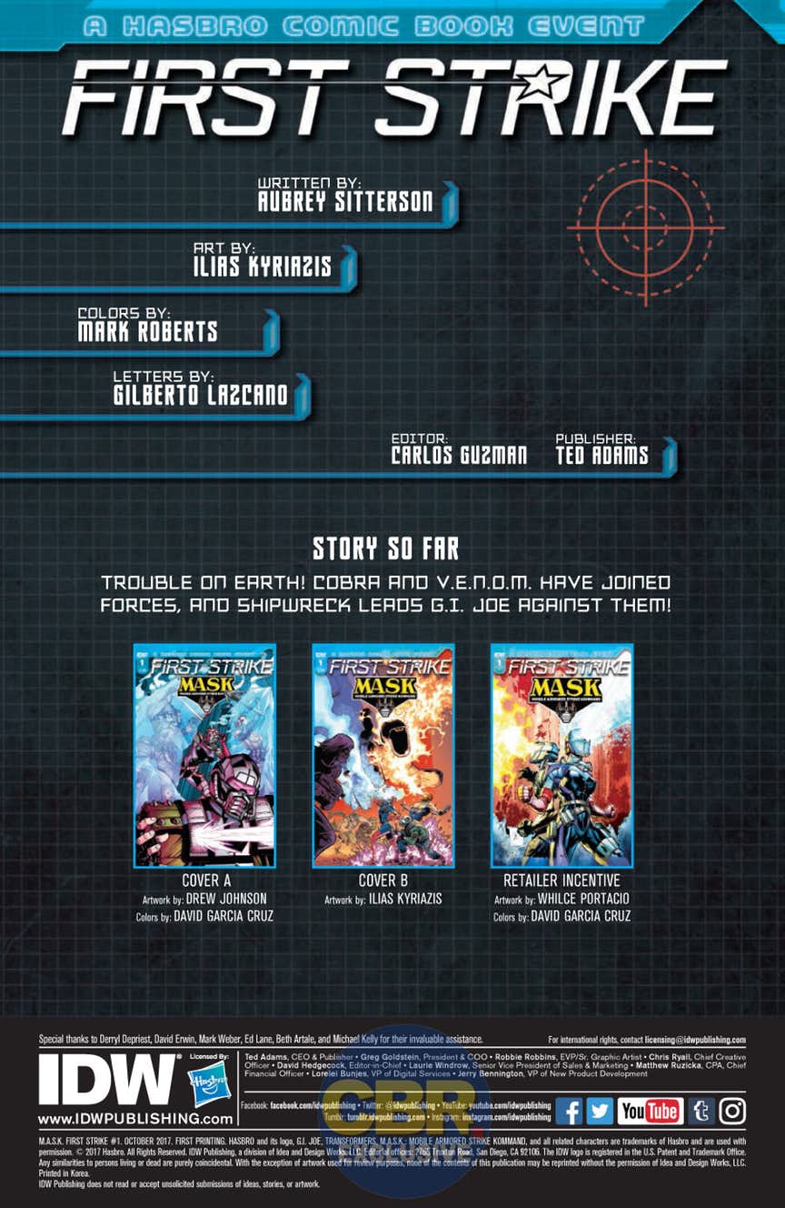 IDW releases its Hasbro event tie in M.A.S.K.: First Strike #1 this coming Wednesday, and you can take a look at a preview of the issue here; check it out…