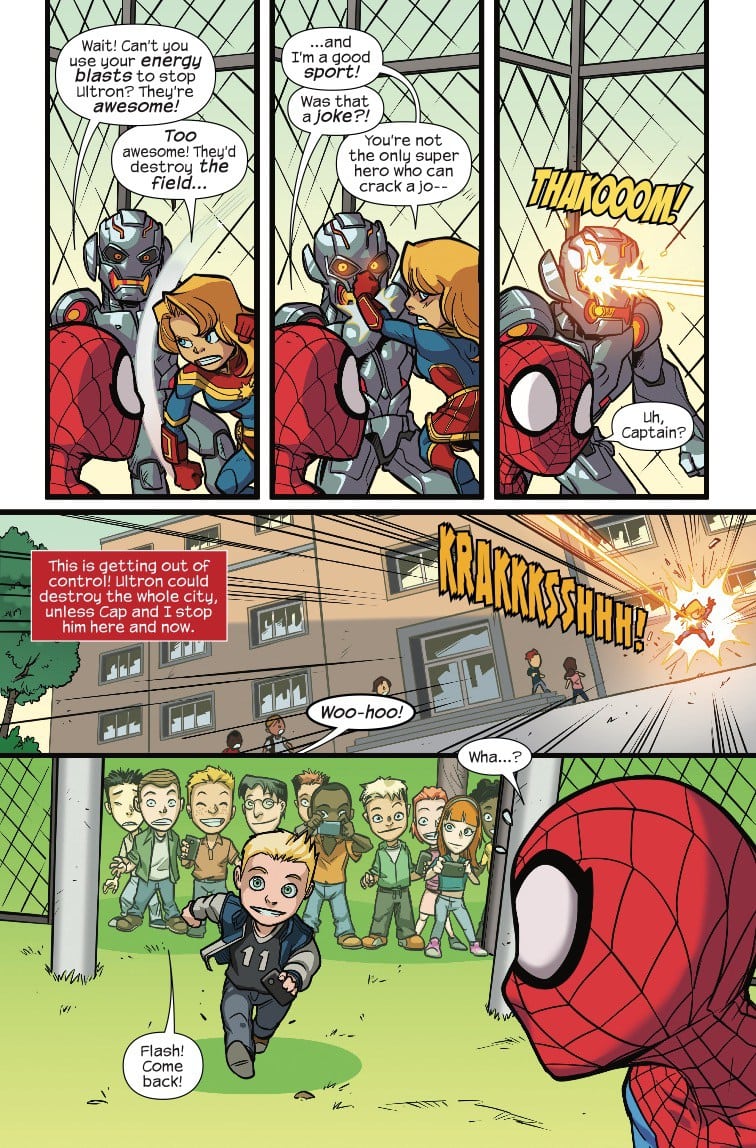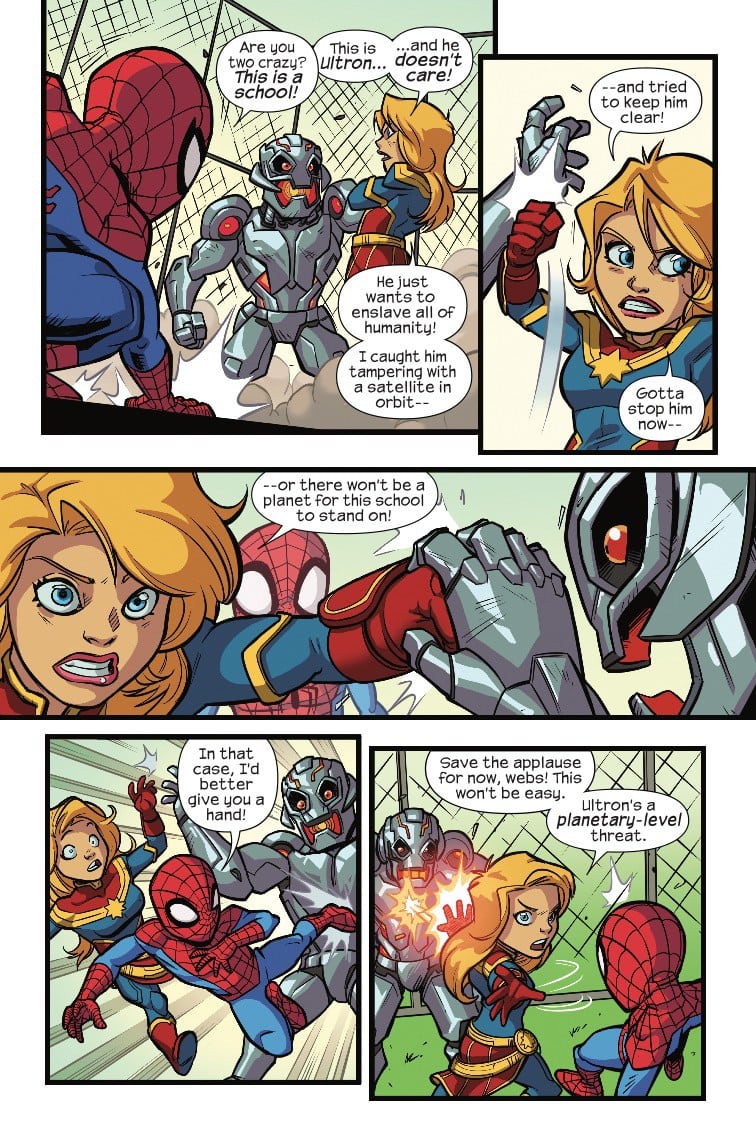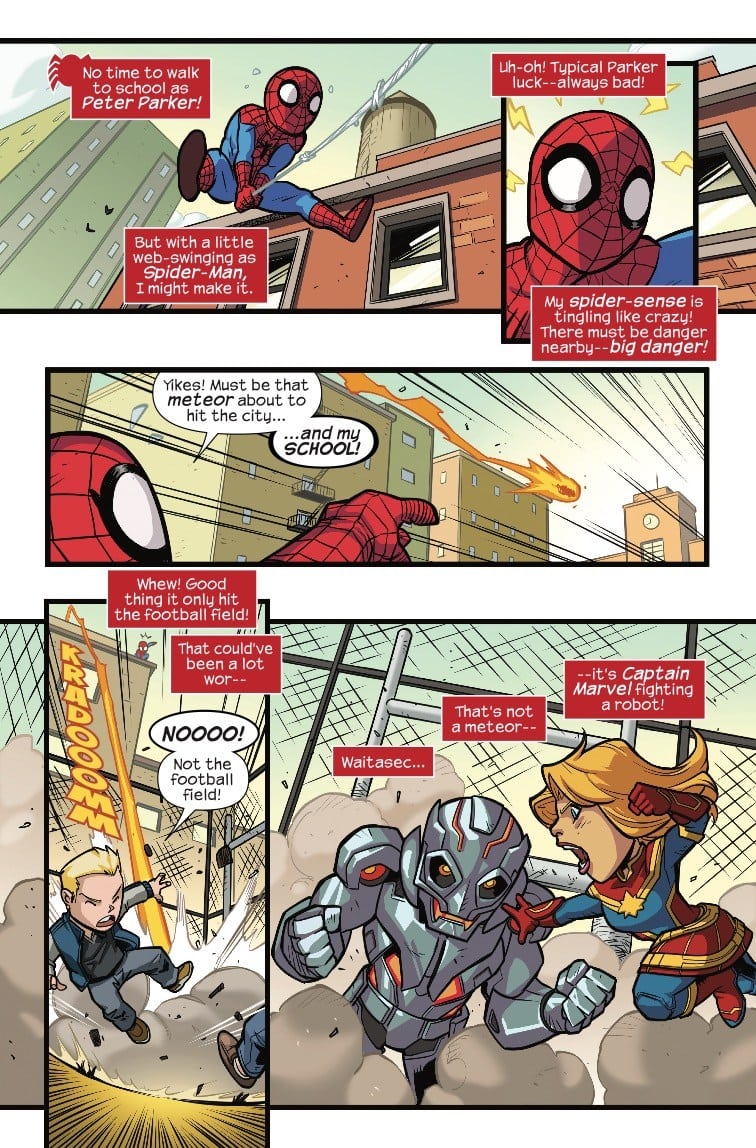 Carol Danvers teams up with Spider-Man this coming Wednesday in the all-ages adventure Marvel Super Hero Adventures: Captain Marvel – First Day Of School #1; check out a preview of the issue here…