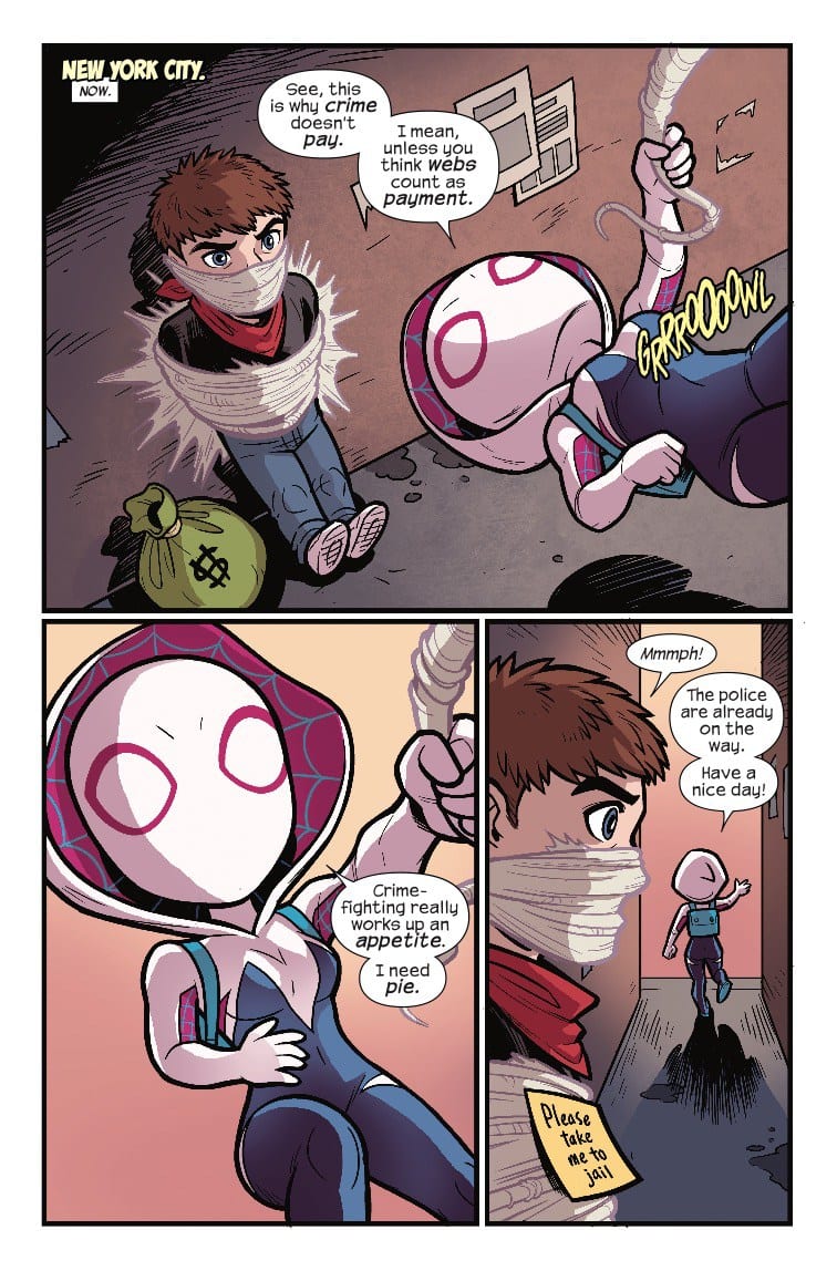 It’s Thanksgiving in New York! You know what that means… Feasts! Parades! And…BAD GUYS?! When the villainous VENOM threatens to spoil the city’s fun on Thanksgiving Day, it’s up to Spider-Man and Captain Marvel to set him straight and save the celebration! PLUS! A story from SEANAN MCGUIRE, writer of the all-new Gwen Stacy series SPIDER-GWEN: GHOST-SPIDER, starring a certain hoodie-wearing hero!