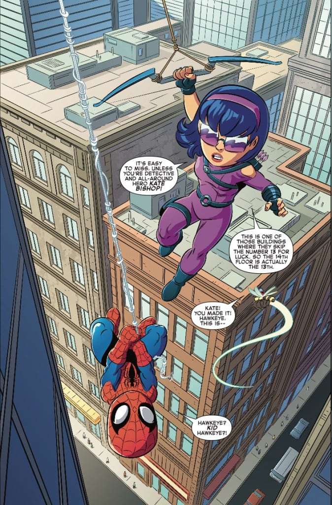 HEROES OF ALL SIZES – TO THE RESCUE! The astonishing Ant-Man is in trouble! But when his daughter Cassie calls Spider-Man for help, Spidey finds out he’s not the only hero in town! West Coast bigshot Hawkeye, A.K.A. Kate Bishop, is already on the case. They’ll soon discover that two shots are better than one – especially when you’re facing Taskmaster, the villain who can mirror any fighting move! It’s a triple dose of heroes in Marvel’s latest all-ages adventure!