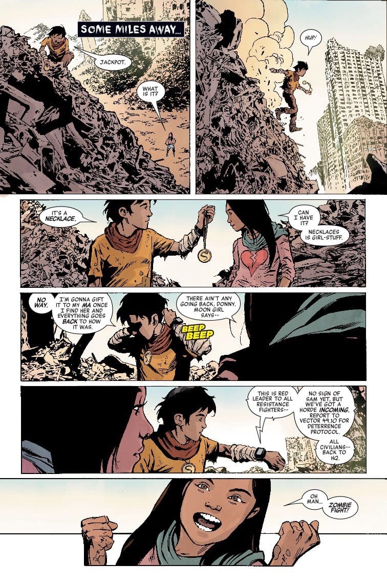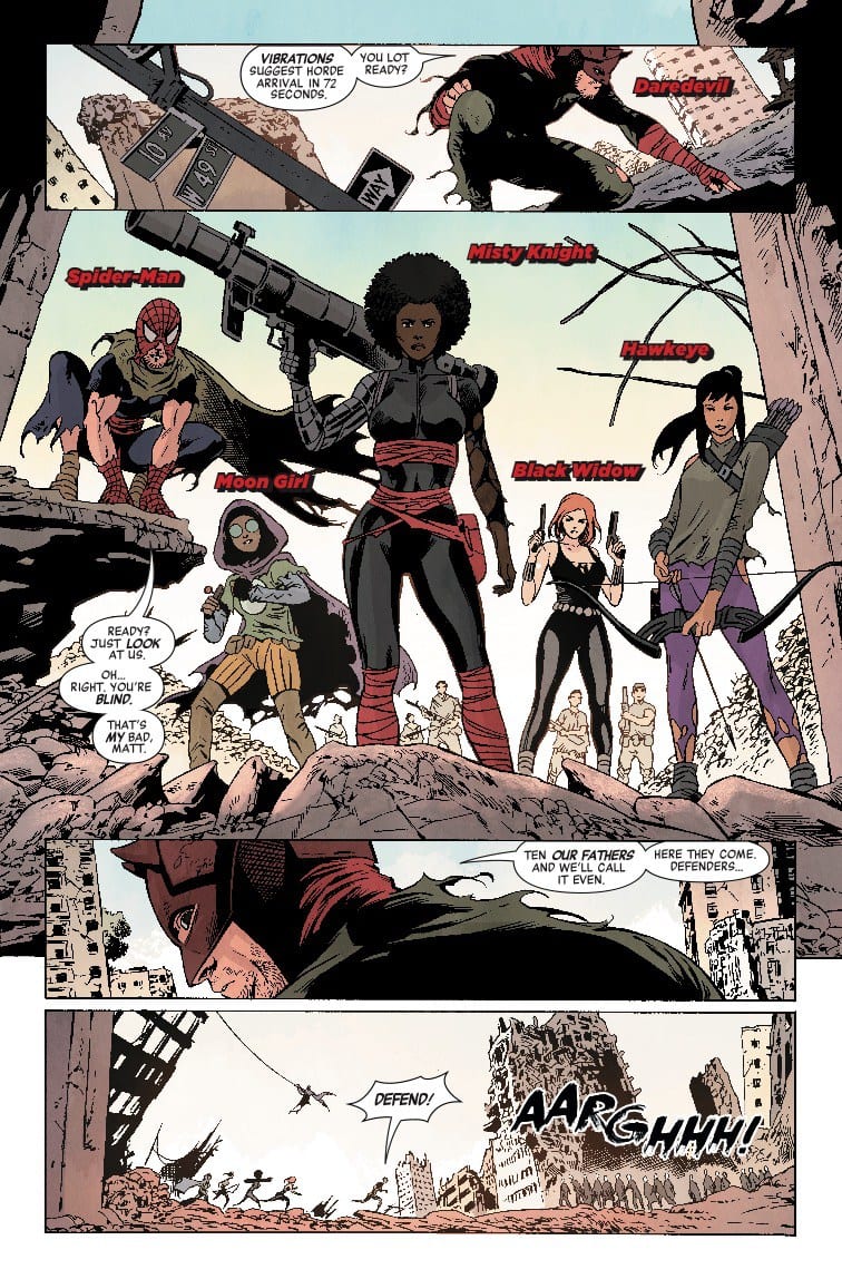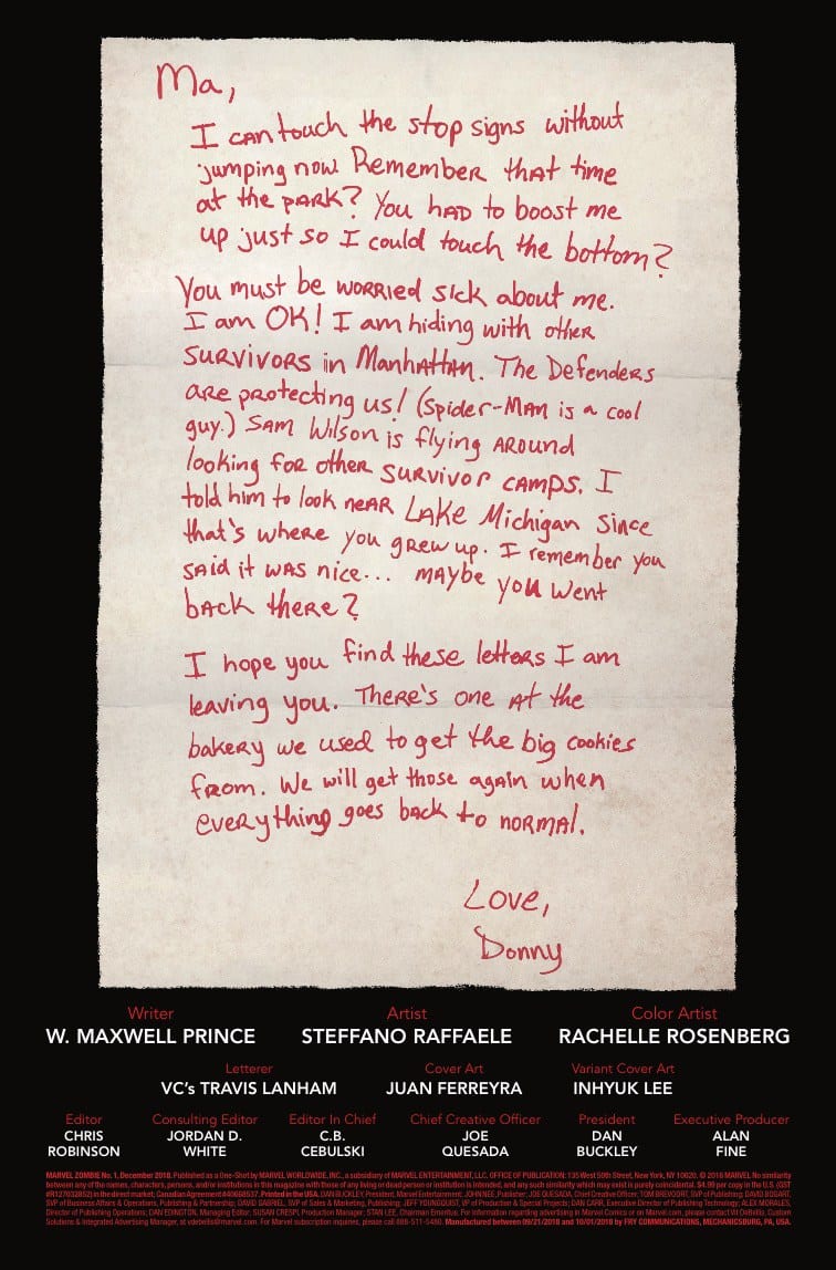 NEW FROM THE HOUSE OF IDEAS! MARVEL ZOMBIES IS BACK…WITH A TWIST! Years after an incurable zombie virus ravaged the world, a small colony of survivors is protected by the Marvel U’s few remaining heroes, including Spider-Man, Daredevil and the Falcon. But when their last chance at salvation arrives, will they be willing to sacrifice their own humanity in the process? From the twisted minds of ICE CREAM MAN writer W. Maxwell Prince and Stefano Raffaele (Generations: Hawkeye) comes the next macabre obsession for fans of The Walking Dead and The Road!