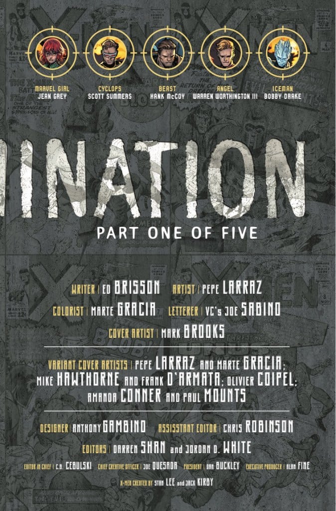 EXTERMINATE THE PAST. ELIMINATE THE FUTURE. Cyclops. Iceman. Angel. Beast. Marvel Girl. The original team of teen mutants brought together by Professor Charles Xavier many years ago have been shunted through time to find a world they barely recognize but were determined to help. Now, finding themselves targeted for death, the future of mutantkind lies squarely in the hands of its past. Writer Ed Brisson (OLD MAN LOGAN, CABLE) and artist Pepe Larraz (UNCANNY AVENGERS, AVENGERS: NO SURRENDER) answer the biggest question of all: can the fate of the X-Men be changed?
