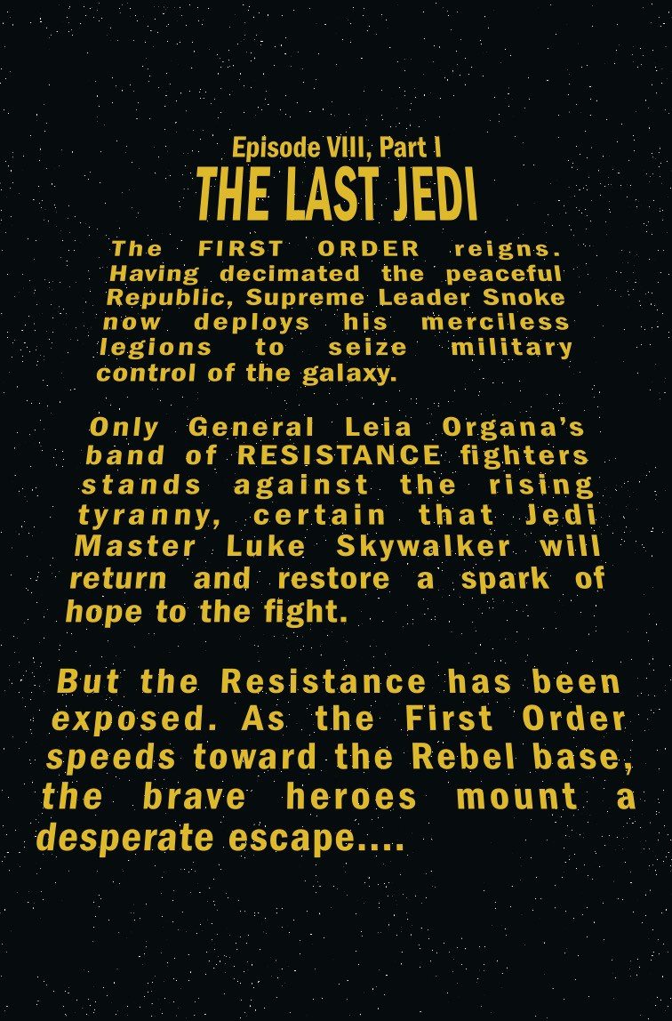 The Resistance has found Luke Skywalker! But the First Order is hot on their tail…and they are out for blood. Join writer Gary Whitta (ROGUE ONE: A STAR WARS STORY) and artist Michael Walsh (STAR WARS ANNUAL, HAWKEYE and THE VISION) as they take on the adventures of Force prodigy Rey, ace pilot Poe Dameron, and ex-First Order recruit Finn from the hit blockbuster STAR WARS: THE LAST JEDI – featuring never-before-seen scenes of your favorite characters!