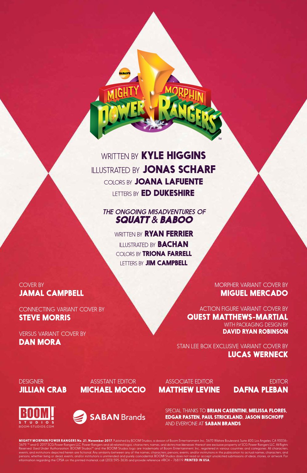 Mighty Morphin Power Rangers #21 is out on November 22nd, priced $3.99.