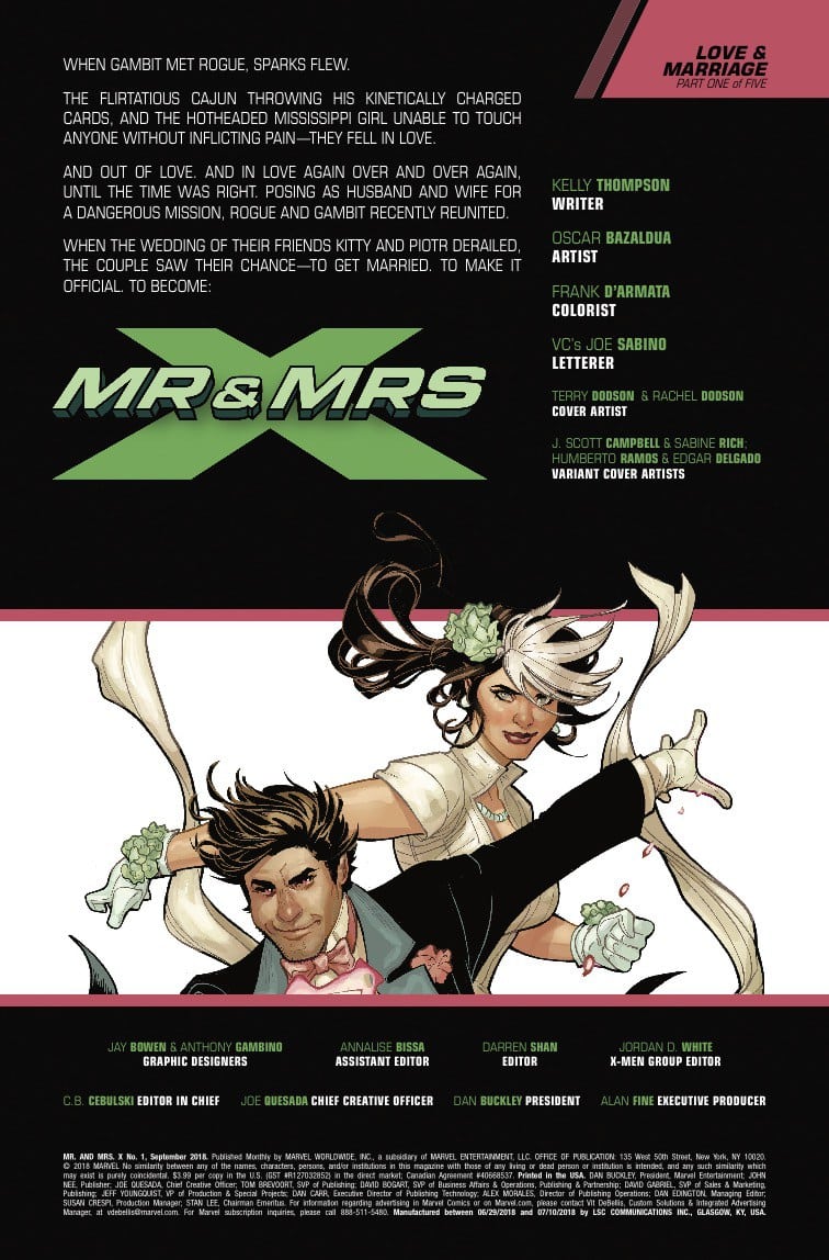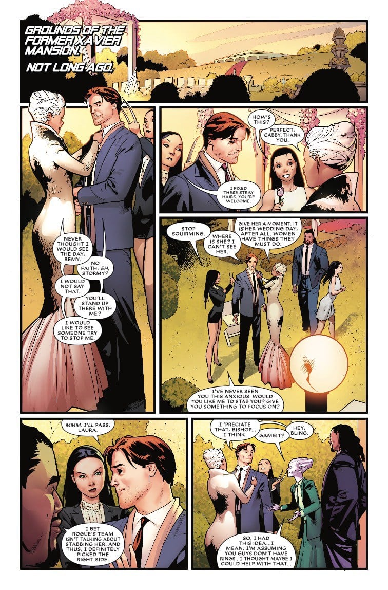 Married life gets underway for Gambit and Rogue this coming week with the release of Mr. & Mrs. X #1, and you can take a look at a preview of the issue here…