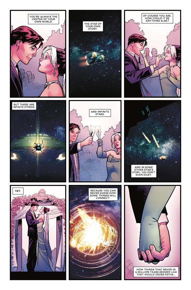 LOVE & MARRIAGE PART 1! Straight from the pages of X-MEN GOLD…to the surprise of everyone, the Marvel Universe’s hottest couple has finally tied the knot! In their extraordinary lives, they’ve faced nearly every challenge imaginable, but how will they fare against former flames making trouble? An entire galaxy in jeopardy? You want it? We got it, as Kelly Thompson (HAWKEYE, ROGUE & GAMBIT) and Oscar Bazaldua (SPIDER-MAN, STAR WARS: ROGUE ONE) bring you the tantalizing tale of a modern marriage…X-MEN STYLE!