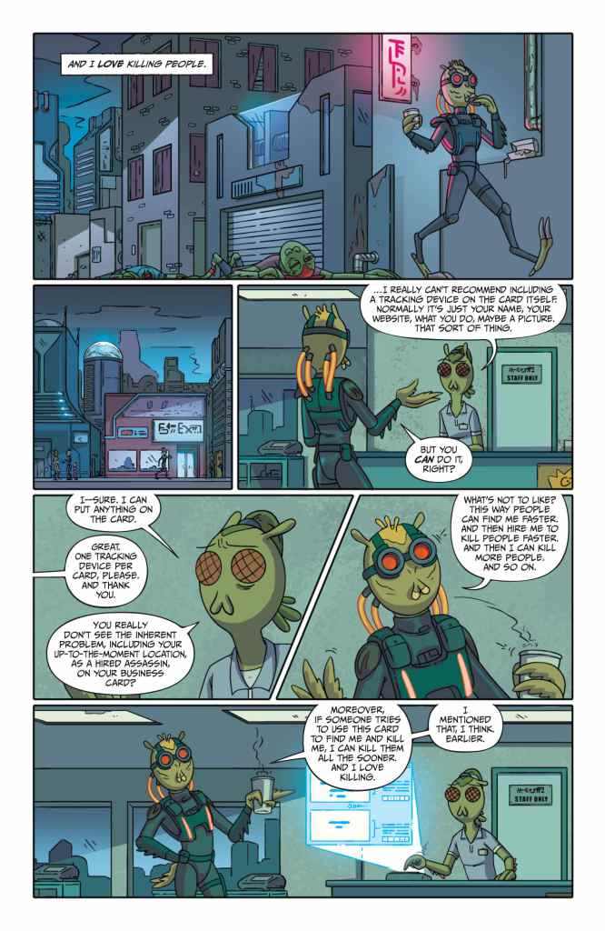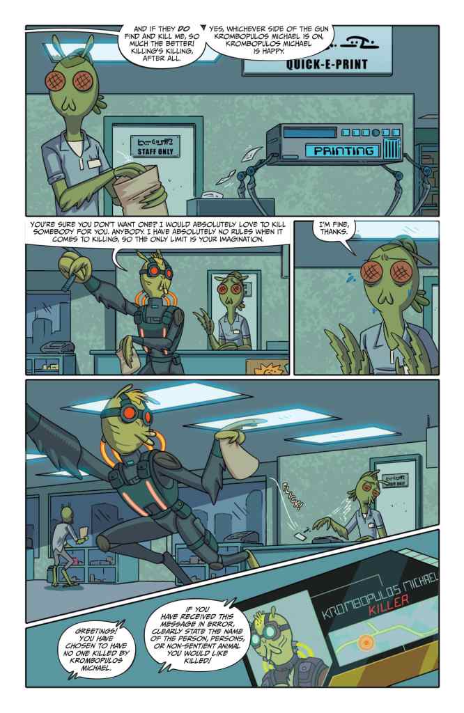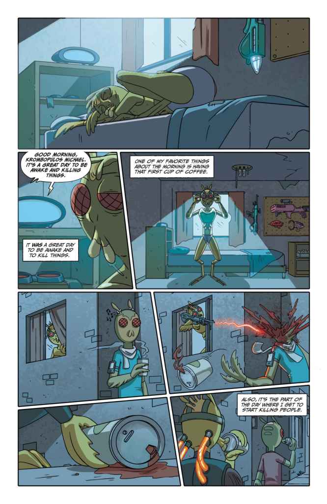 Oni Press launches its new Rick and Morty Presents quarterly series today by putting the spotlight on the Gromflomite assassin Krombopulos Michael! Check out a preview of the issue here…