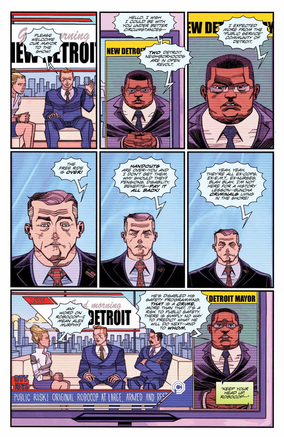 When Alex Murphy, the original RoboCop, appears to side against OCP, news reports appear that call into question if he’s a risk to the public…and if OCP needs to take drastic measures.