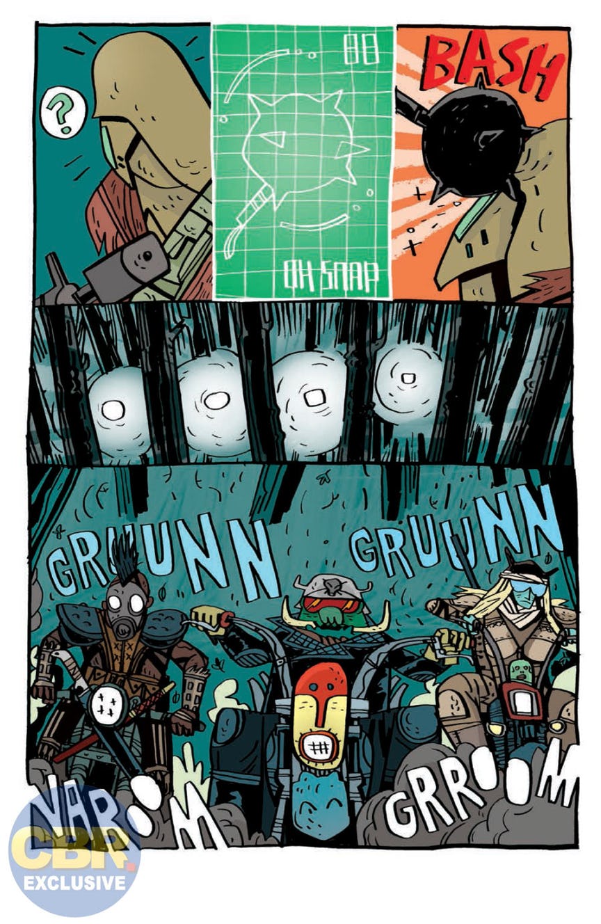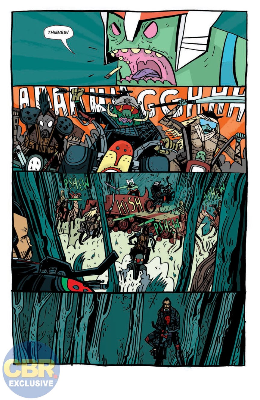 A ruthless biker gang ambushes a royal envoy. The name of their leader? SAMURAI JACK! From the team that brought you HELENA CRASH comes an all-new take on the legendary wandering samurai that is completely different and yet surprisingly familiar! Wait, what? How is that even possible? YOU GOTTA READ SAMURAI JACK: QUANTUM JACK TO FIND OUT!